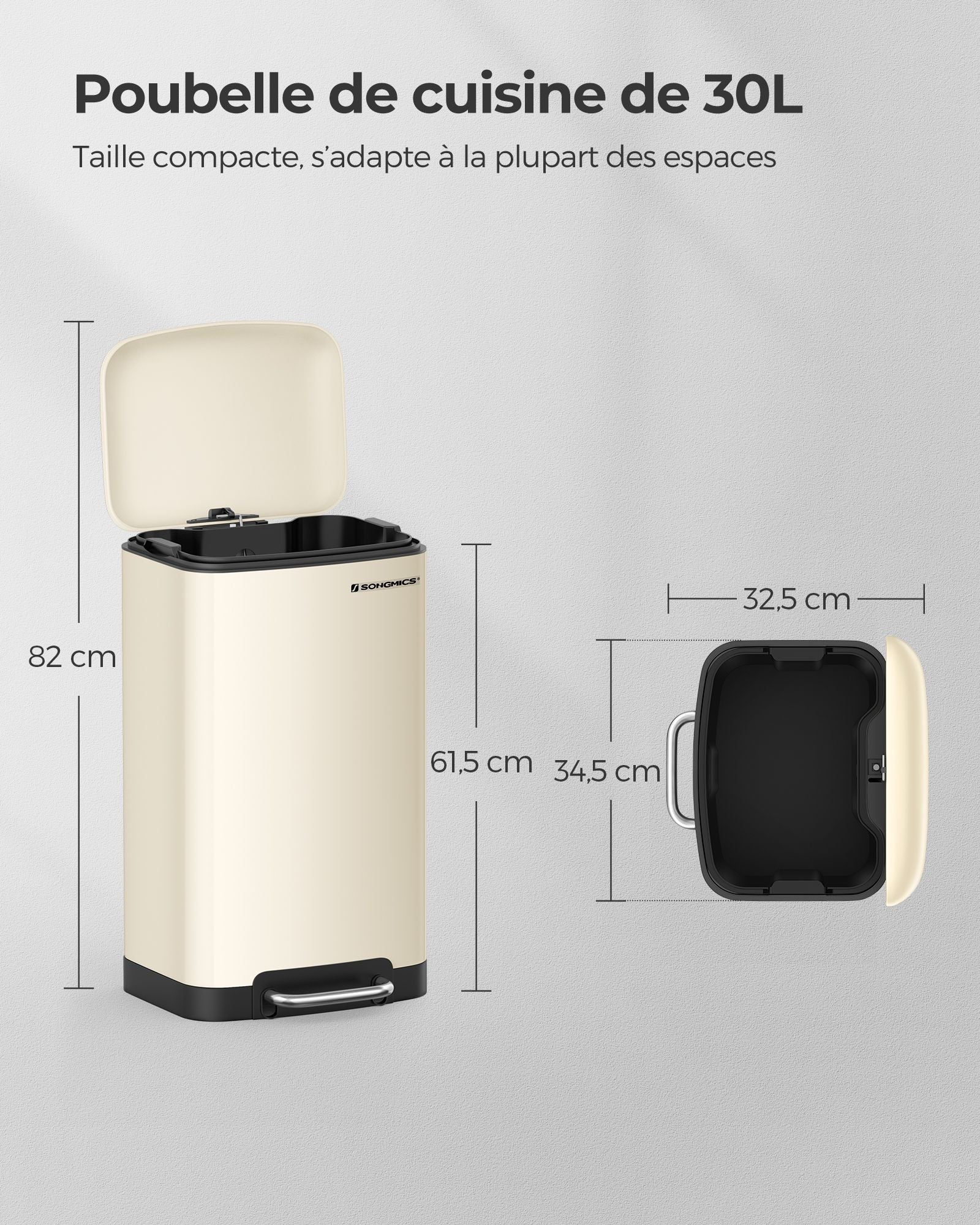 Dimensions de la poubelle (sans pédale) : 34,5 x 32,5 x 61,5 cm (L x l x H)