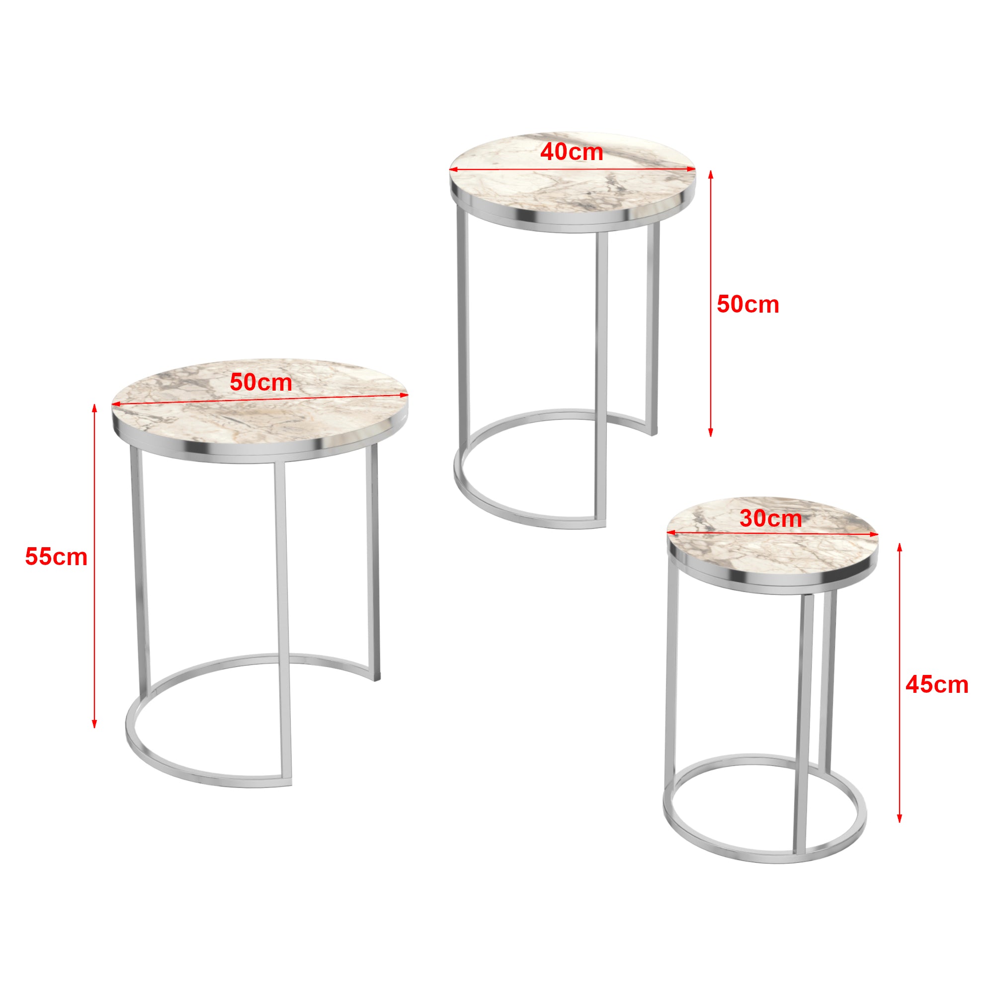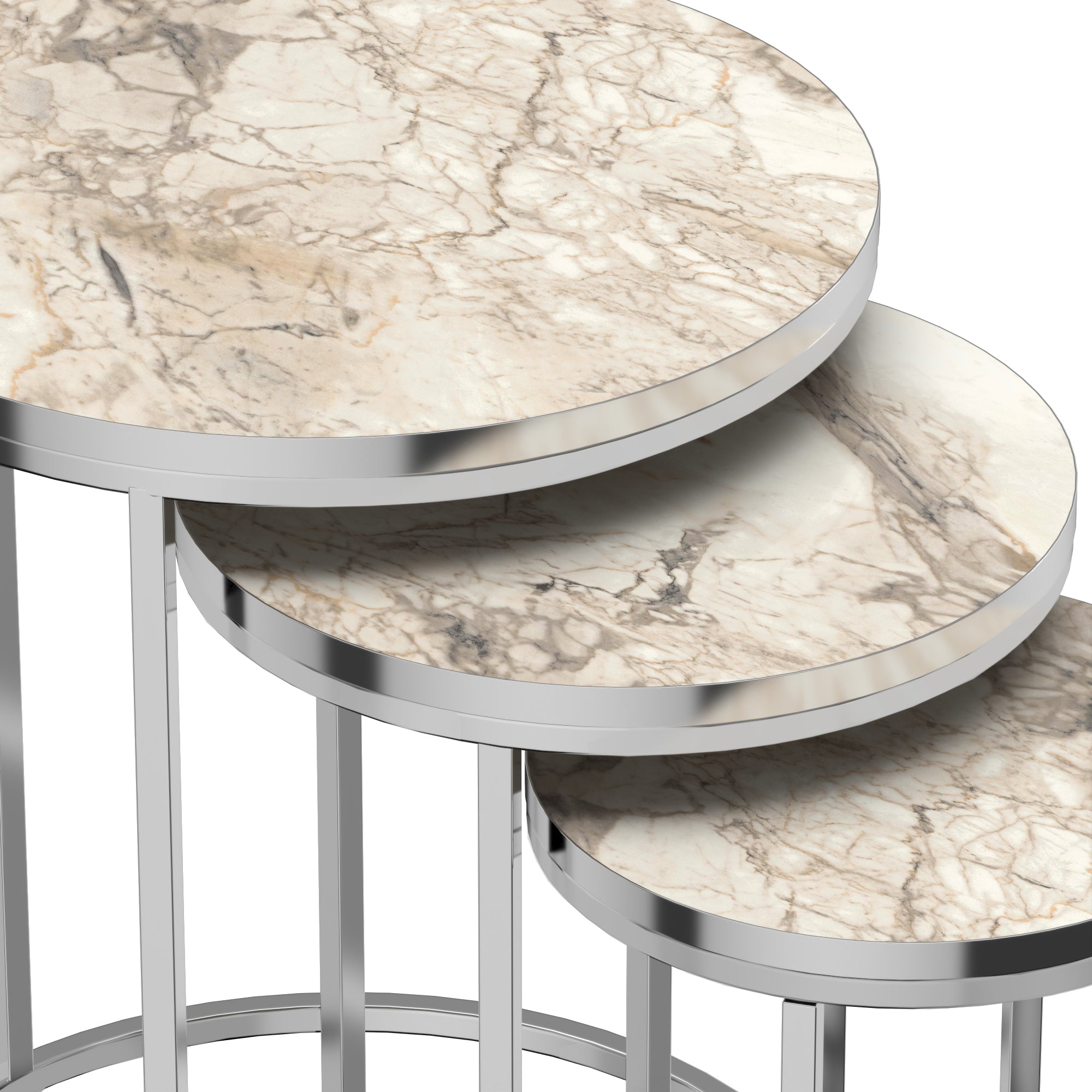 Set de 3 tables d'appoint rondes gigognes marbre blanc argent 03_0008377