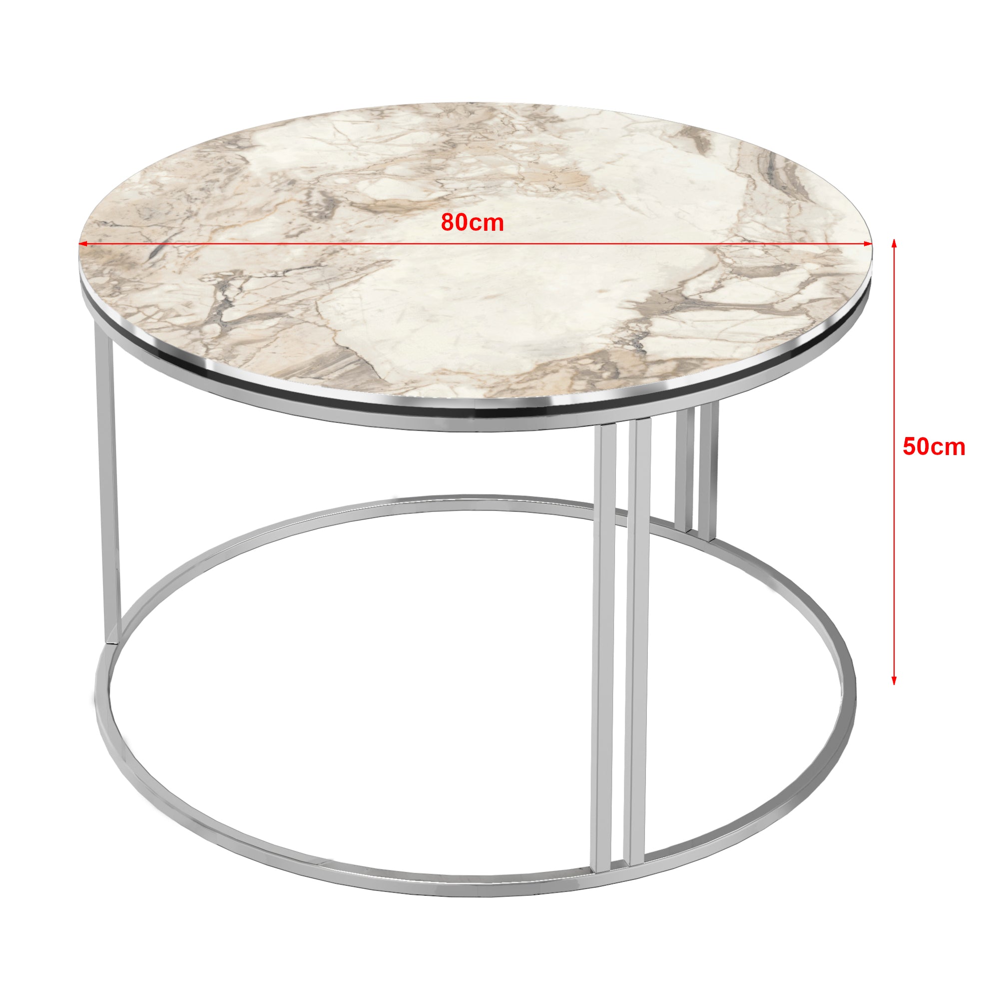 Table basse ronde 50 x 80 cm marbre blanc argent 03_0008423