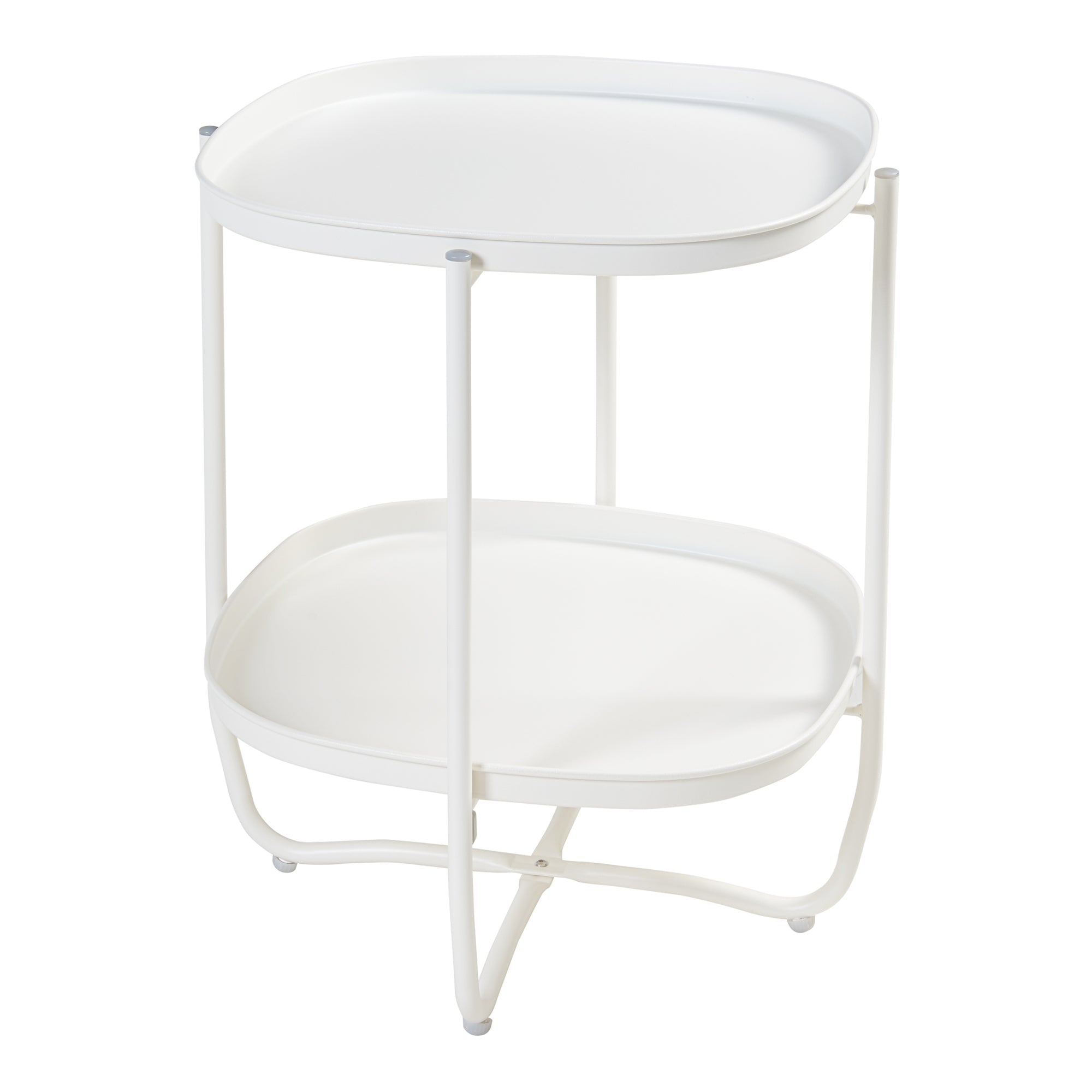 Table basse console d'appoint avec plateaux amovibles 58 x 46 x 46 cm acier blanc 03_0010769