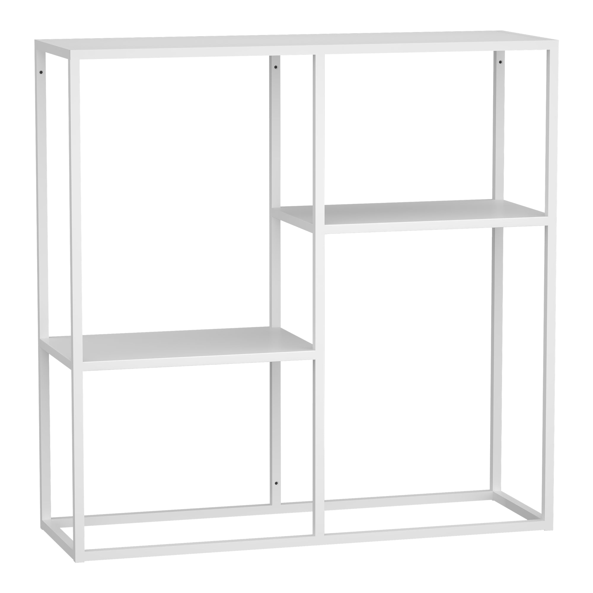 Table console avec 3 surfaces de rangement acier 80 x 80 x 26 cm blanc mat 03_0008593