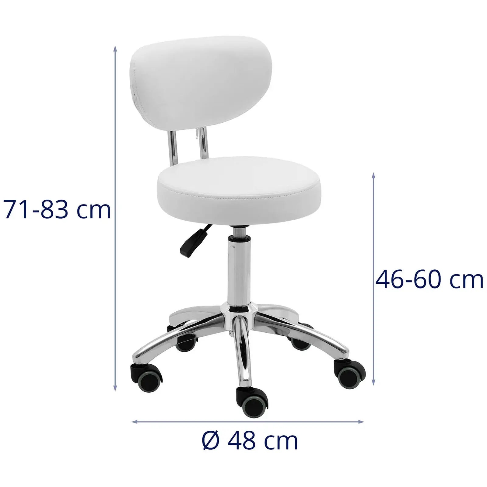 Tabouret à roulette professionnel avec dossier 60 cm 150 kg blanc 14_0010098
