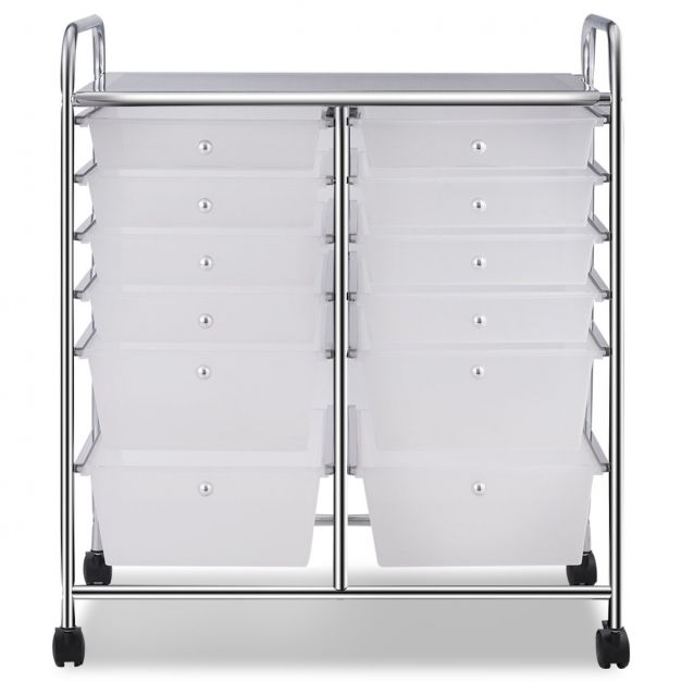 Tour rangement à 12 tiroirs avec roues chariot de rangement polyvalent pour ecole bureau maison blanc 64 x 38 x 75cm 20_0005215