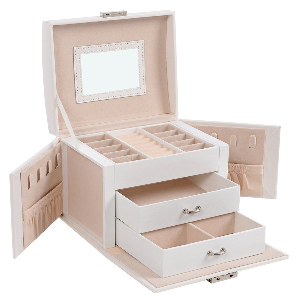 Nos boîtes à bijoux sont également dotées de miroirs intégrés, ce qui vous permet de vous admirer et de mettre en valeur vos bijoux lors de l'essayage. Certaines boîtes sont également équipées de serrures pour une sécurité supplémentaire, vous permettant de garder vos bijoux en toute tranquillité d'esprit.
