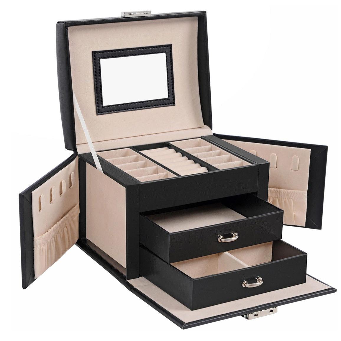 Boîte à bijoux mallette à bijoux coffret à bijoux de voyage organisateur de bijoux portable avec 2 tiroirs miroir serrure et clés verrouillable 17,5 x 13 5 x 12 cm noir 12_0002111