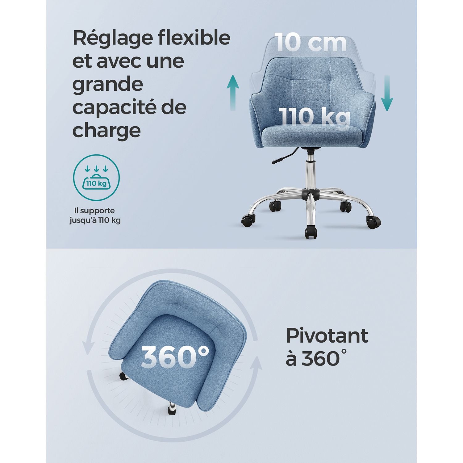 Fauteuil de bureau chaise pivotanteconfortable siège ergonomique réglable en hauteur charge 120 kg cadre enacier tissu imitation lin pour bureau bleu 12_0005884