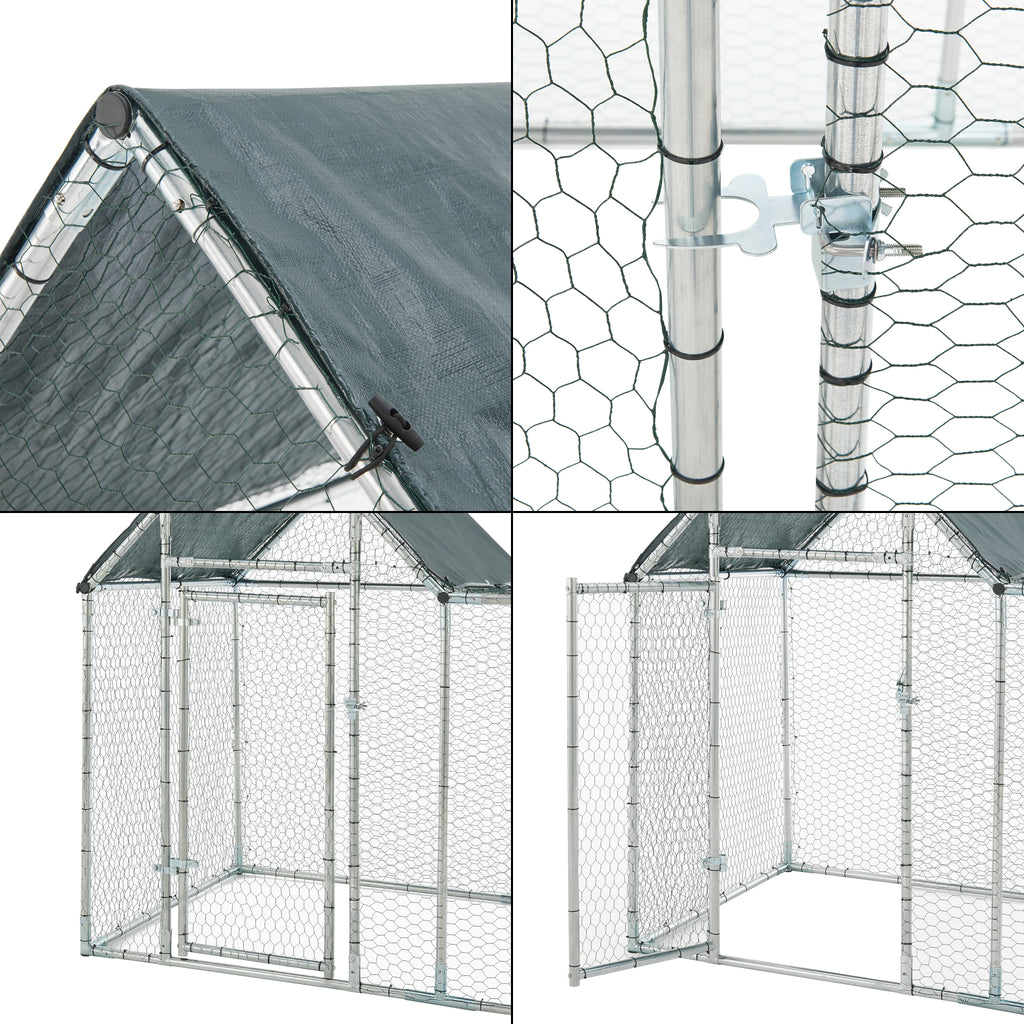 Cette cage plein air est parfaitement adaptée comme enclos dans votre jardin pour des petits animaux tels que des poules ou des canards. Elle offre une protection contre le soleil, la pluie grâce à l'auvent en polyéthylène et la structure robuste avec le grillage dense et les tubes en acier protège vos animaux contre les prédateurs.