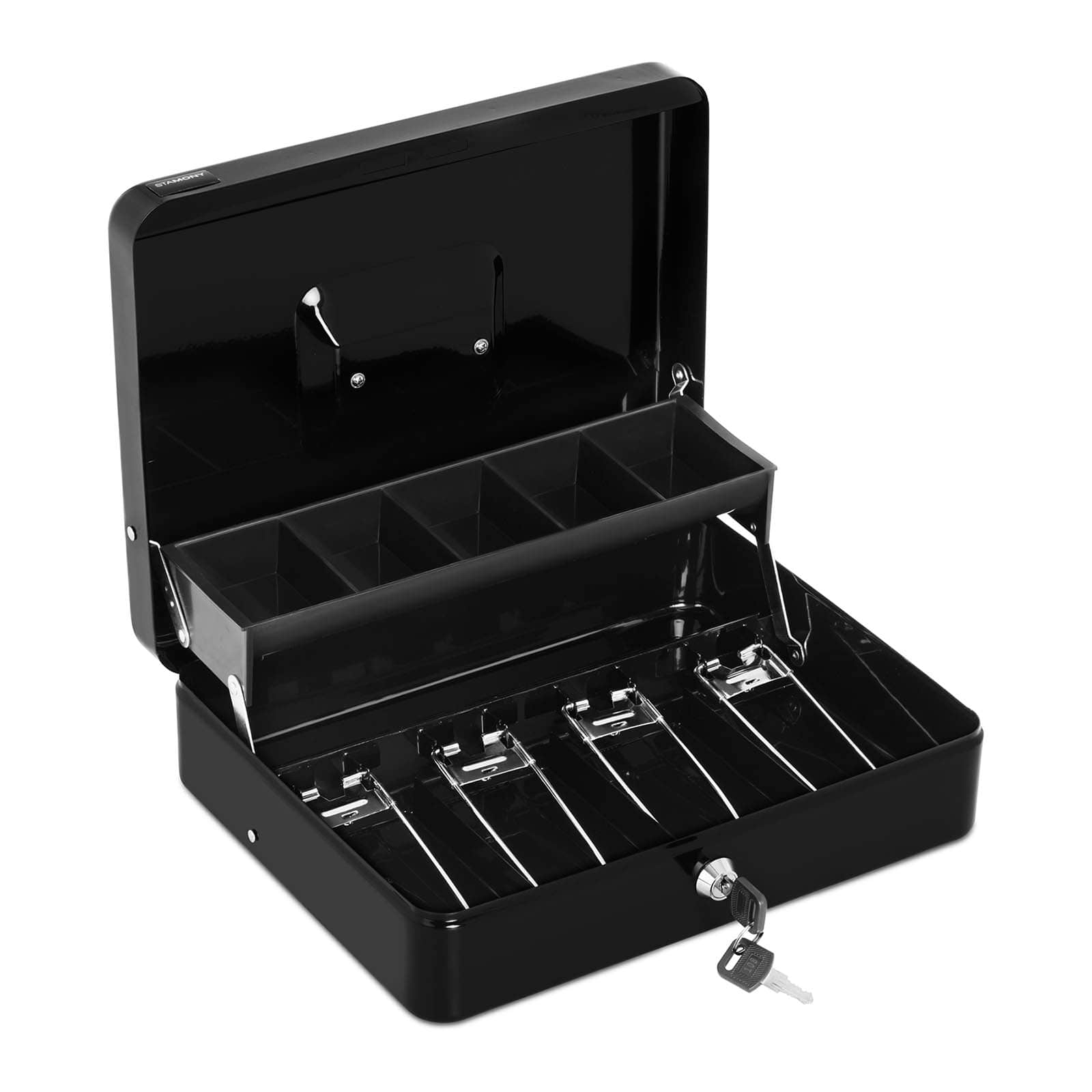 Sûre et ordonnée : la caisse à monnaie verrouillable en tôle d‘acier