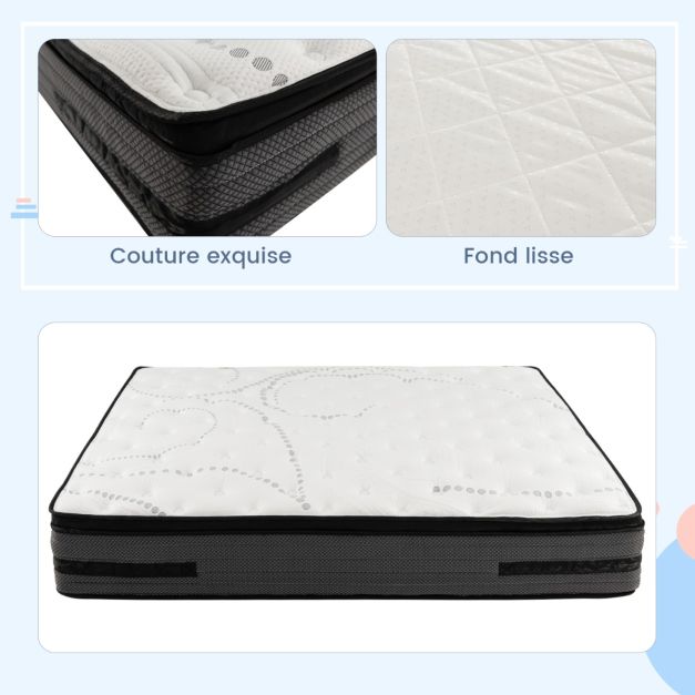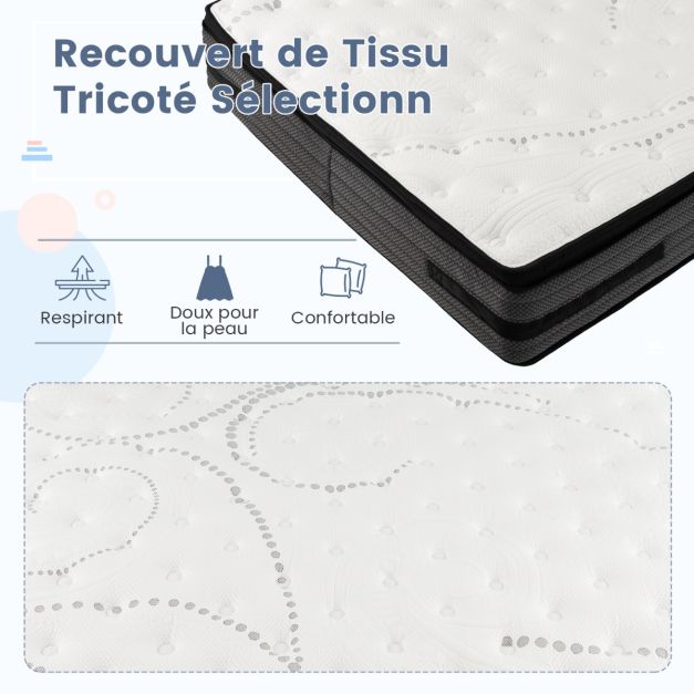 Matériau : tissu tricoté, mousse à mémoire de forme, gel, ressorts