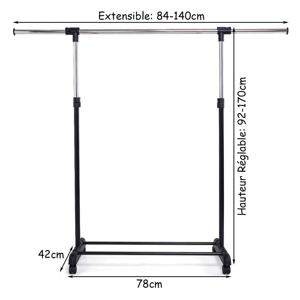 Portant penderie à vêtements mobile télescopique en acier inoxydable hauteur et largeur réglables capacité 90 kg roulettes 20_0000975