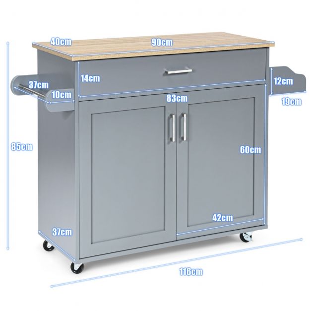 Desserte de cuisine îlot de cuisine à roulettes avec grand placard tiroir porte-epices et porte-serviettes gris 20_0008385