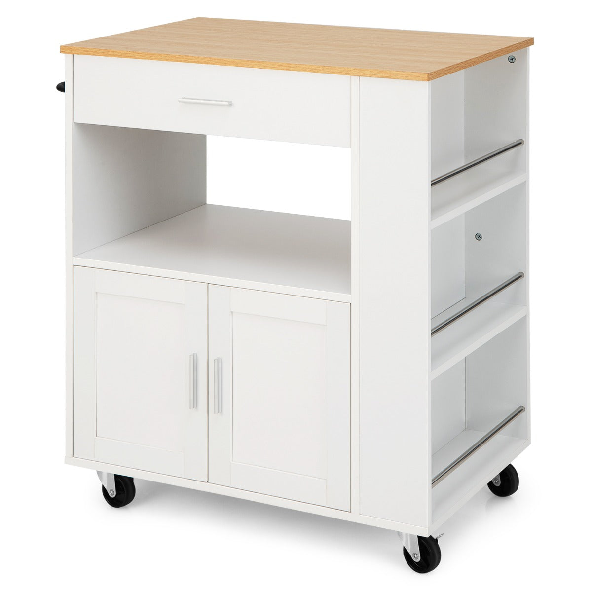Desserte de cuisine avec roulettes 82 x 50 x 92 cm rangement spacieux plusieurs casiers à épices moderne en bois blanc 20_0011643