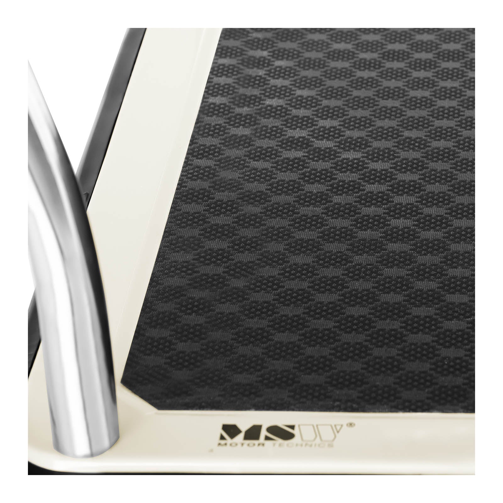 Les deux plateaux de ce chariot de manutention mesurent chacun 72 x 43 cm et ils supportent ensemble un poids allant jusqu’à 120 kg.