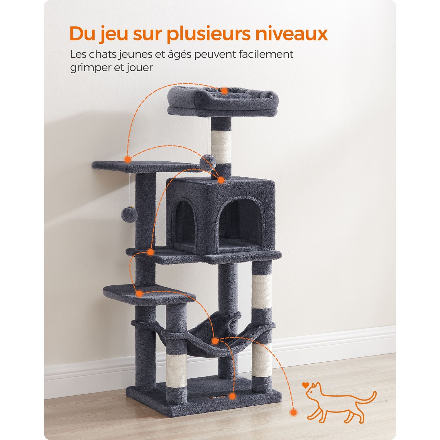 Arbre à chat hamac tour de jeux 143 cm gris 2_0003847