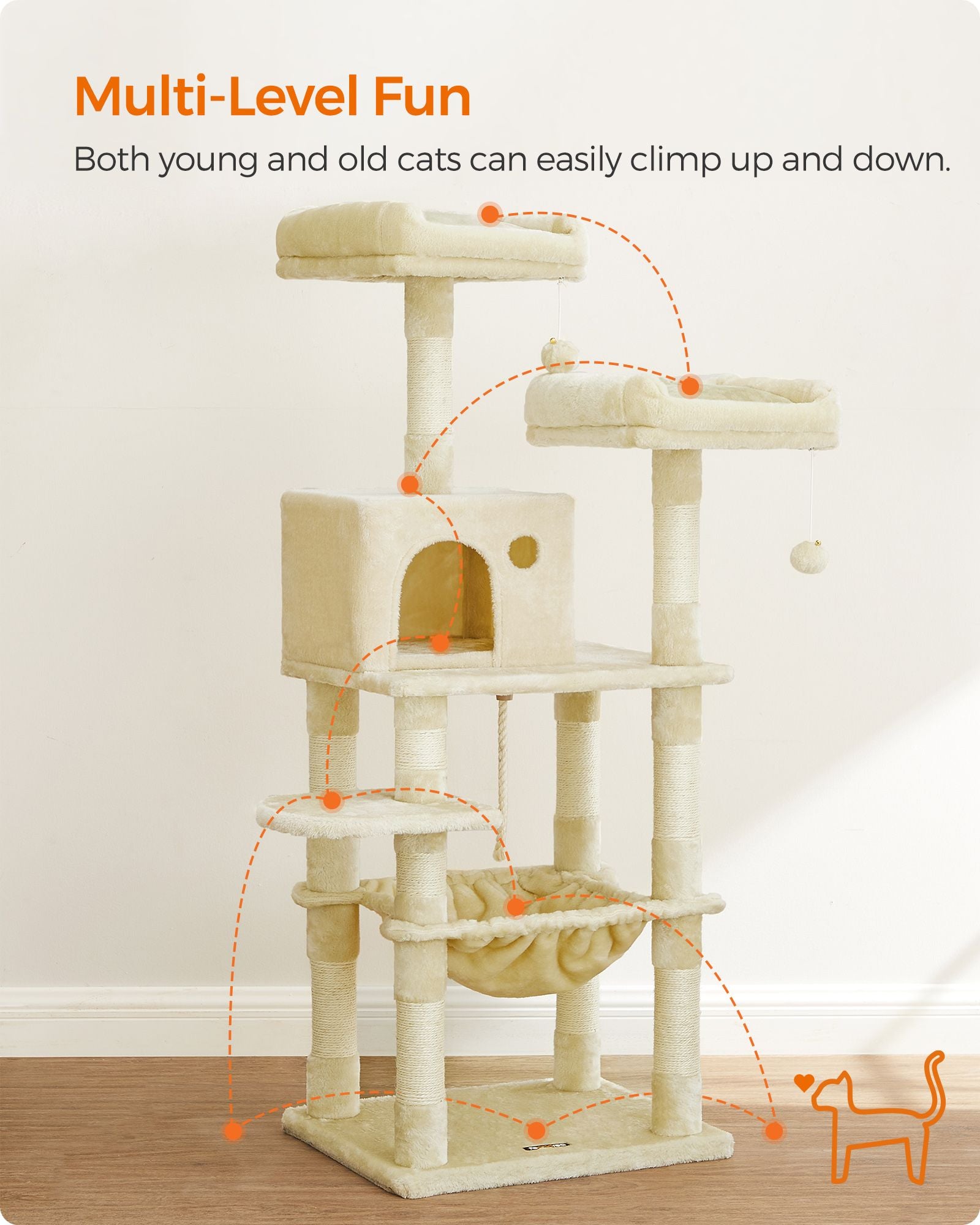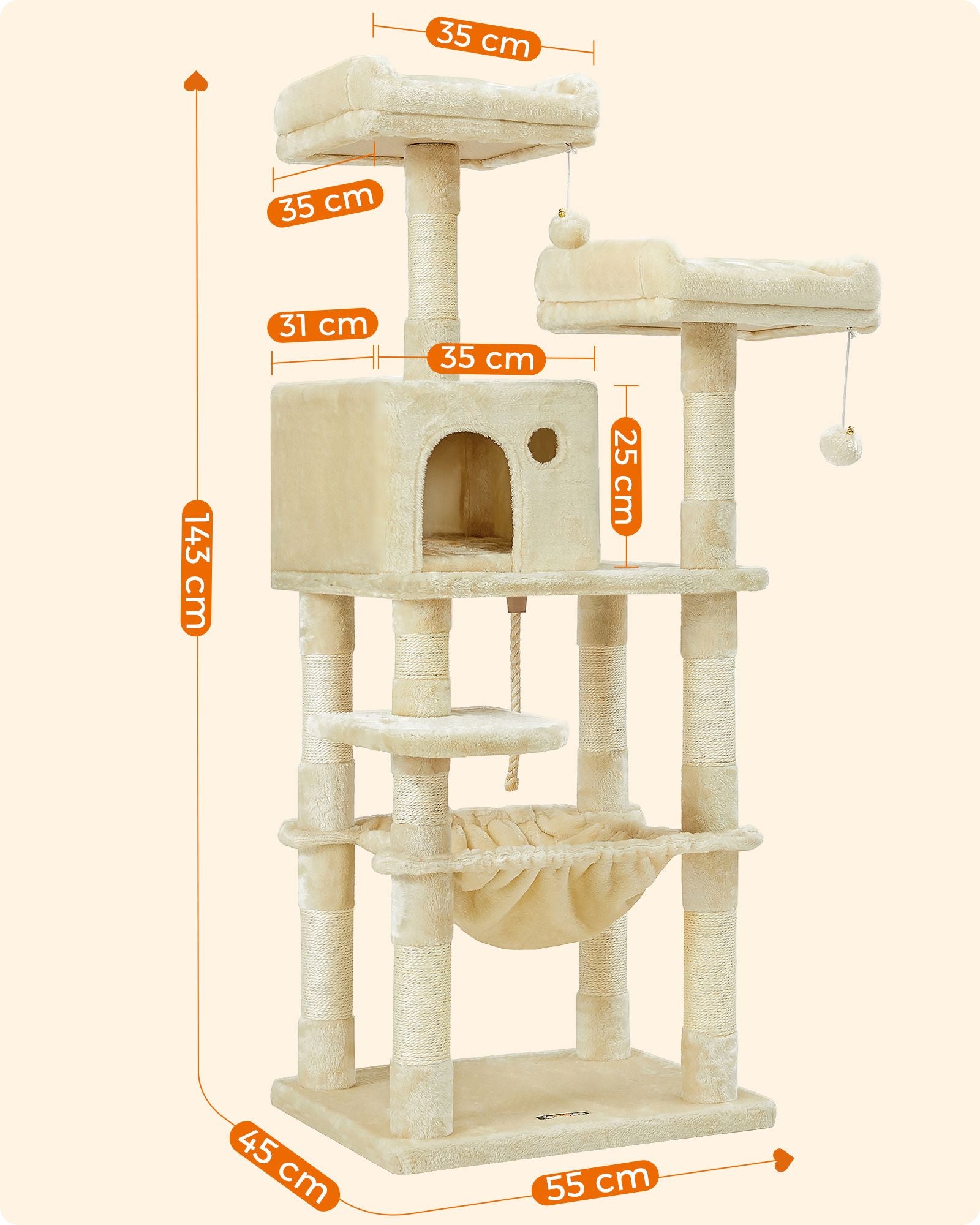 Cet arbre à chats possède 2 plateformes aux bords rembourrés et une niche, offrant de l’espace pour l’observation et le repos, il convient aux familles avec plusieurs chats.