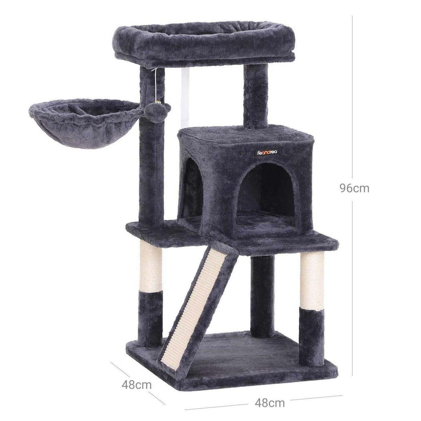 Que vous ayez un chat aventureux ou un chat plutôt calme, cet arbre de 48 x 48 x 96 cm sera toujours très apprécié.