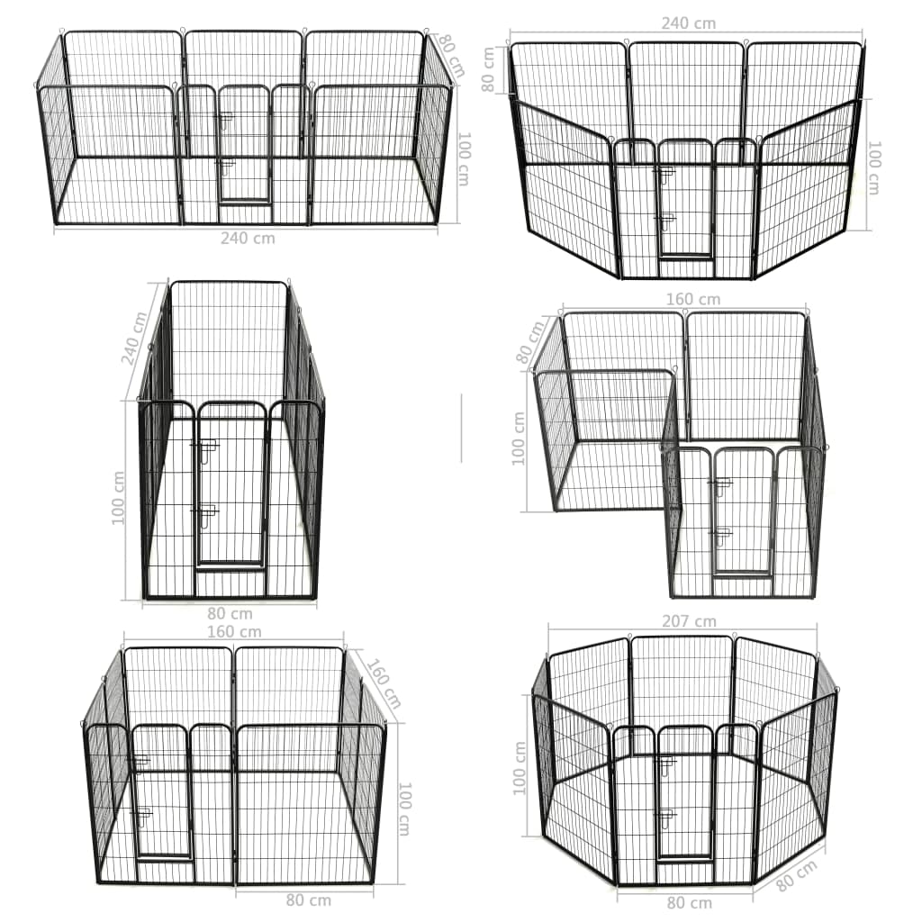 Parc pour chiens chiots animaux 8 panneaux acier 80 x 100 cm noir 02_0000567
