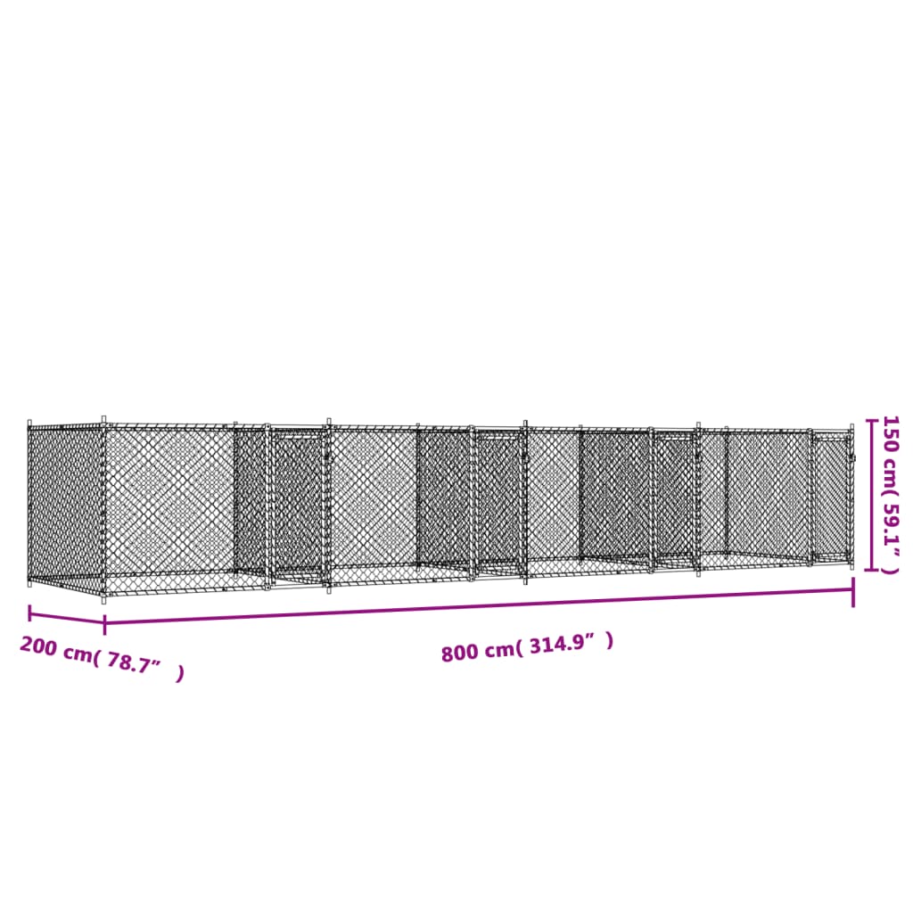 Cage pour chien avec portes 8 x 2 x 1,5 m acier galvanisé gris 02_0041626