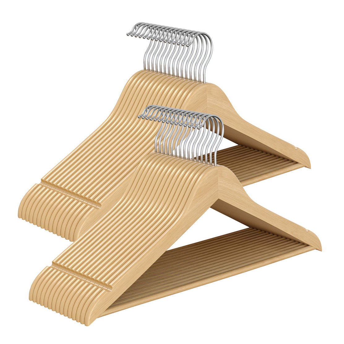 Ces cintres en bois de bouleau de qualité, renforcés par un crochet en acier robuste, sont conçus pour durer. Solides, ils supportent jusqu’à 5 kg chacun, ce qui les rend parfaits aussi bien pour des chemises légères que pour des manteaux d’hiver plus lourds.