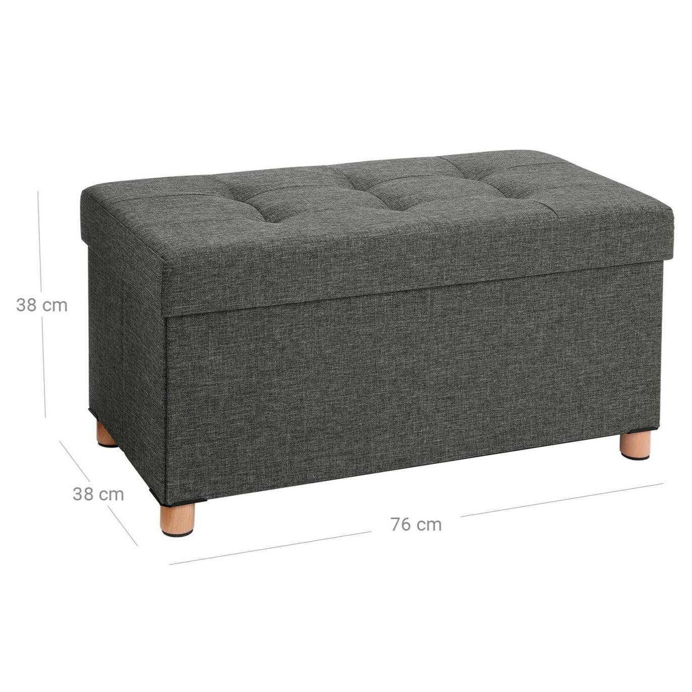 Banc de rangement tabouret rembourré pliable coffre avec couvercle pieds en bois massif gain de place volume 65l capacité de charge 300 kg pour chambre couloir 76 cm gris foncé 12_0003328