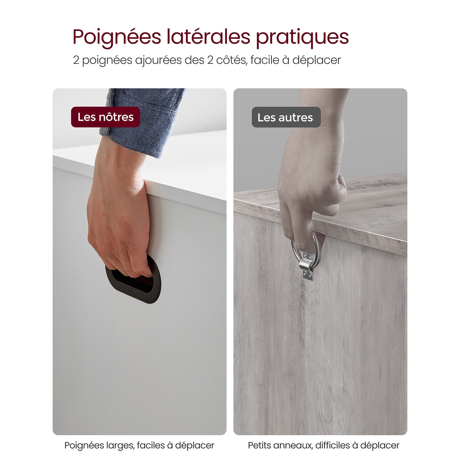 Facile à déplacer grâce à ses poignées latérales ajourées, il se transporte sans effort d’une pièce à l’autre.