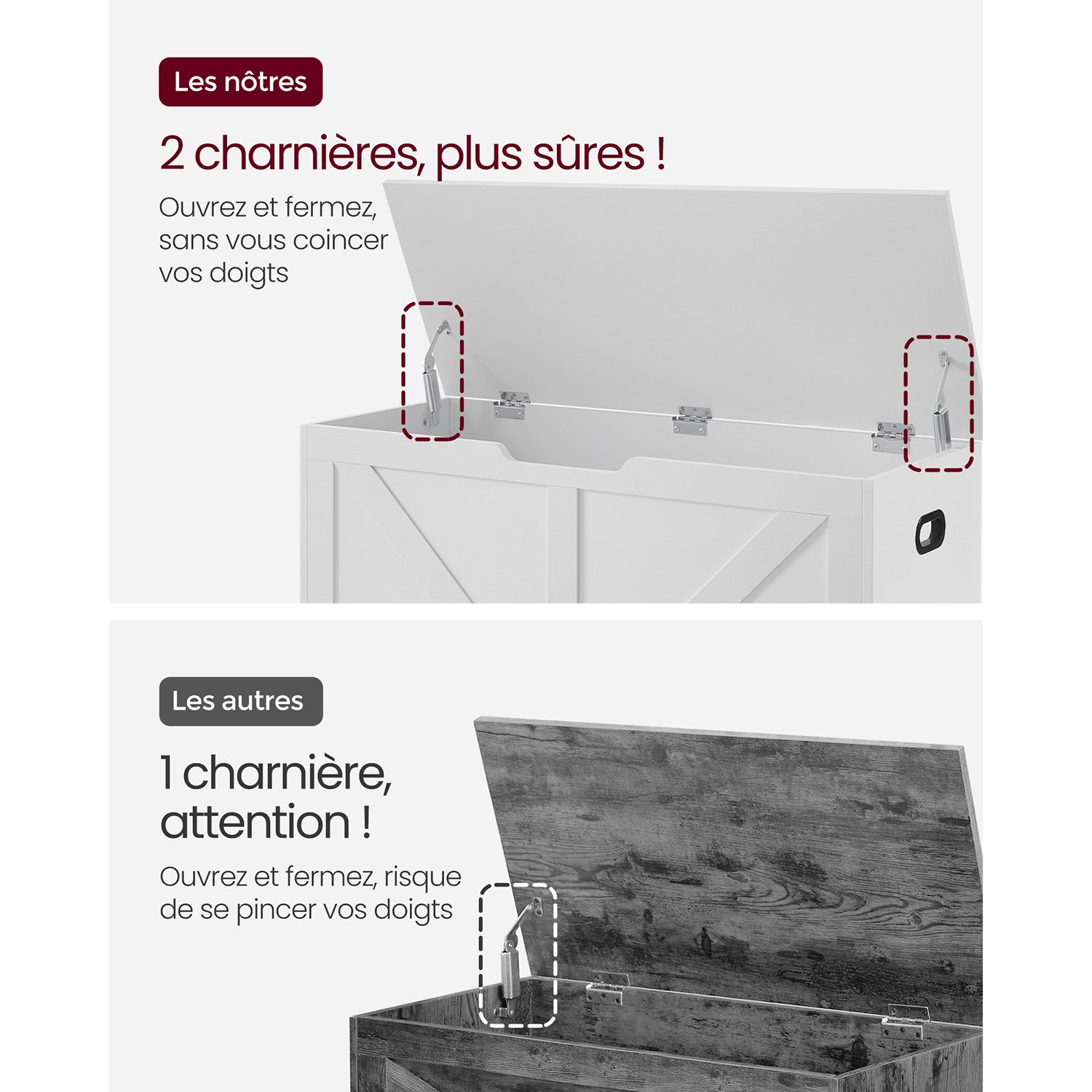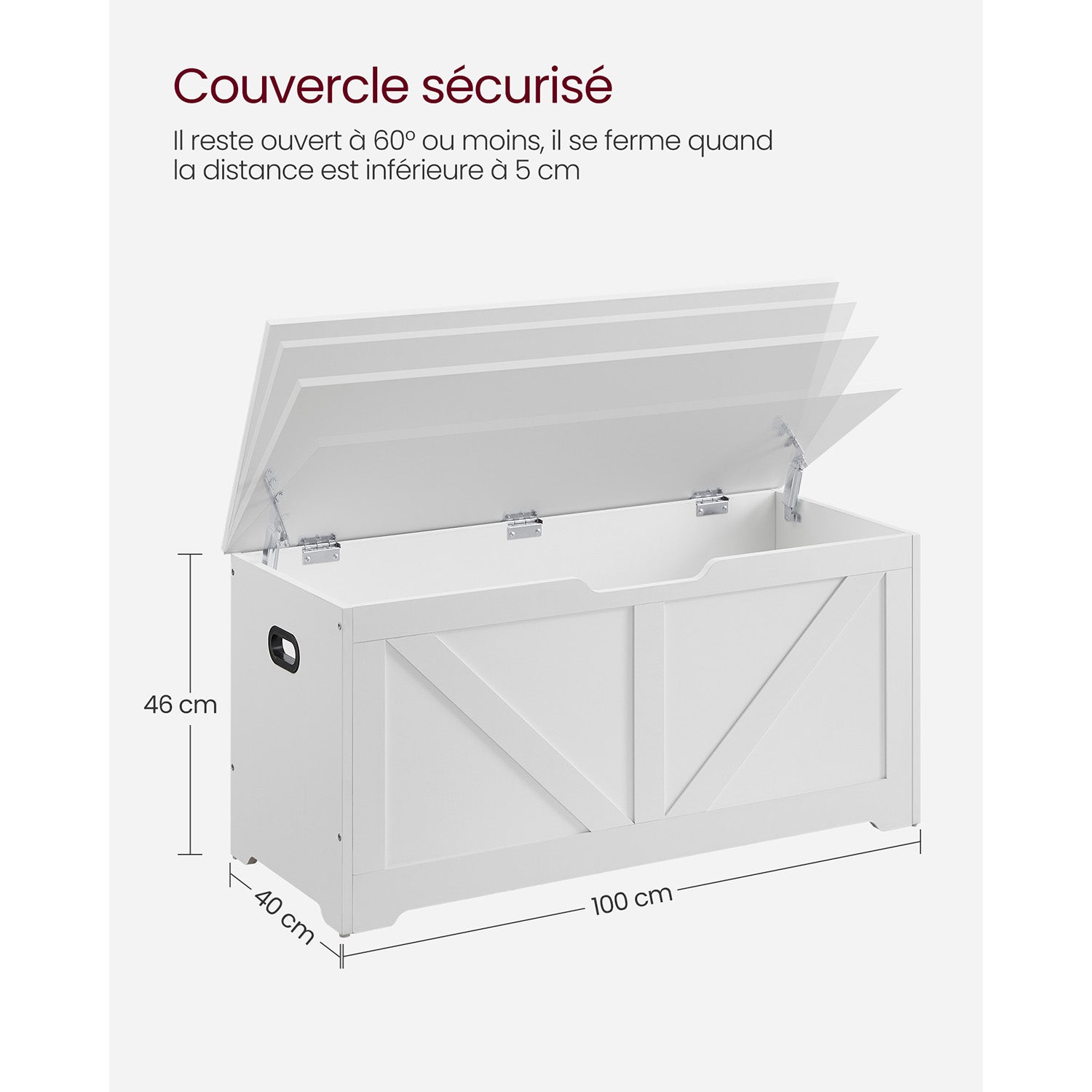 Coffre de rangement intérieur banc à chaussures pouf banquette rangement pour jouet enfant avec charnières de sécurité style grange 100 x 40 x 46 cm blanc 12_0005140