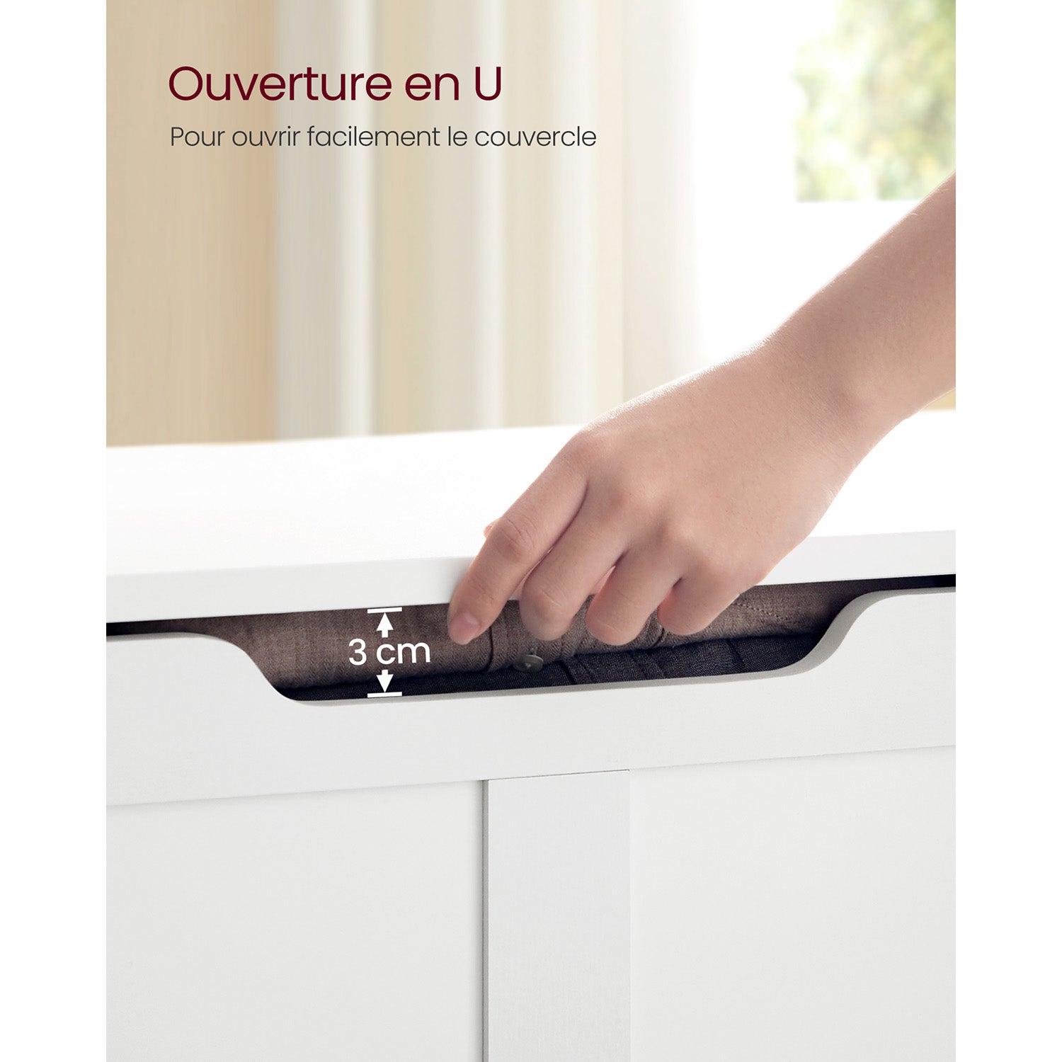 Pratique et sûr, son couvercle est équipé de 2 charnières de sécurité solides qui le maintiennent ouvert à 60° ou moins. Il se referme en douceur lorsqu’il reste moins de 5 cm, évitant ainsi tout risque de se coincer les doigts.