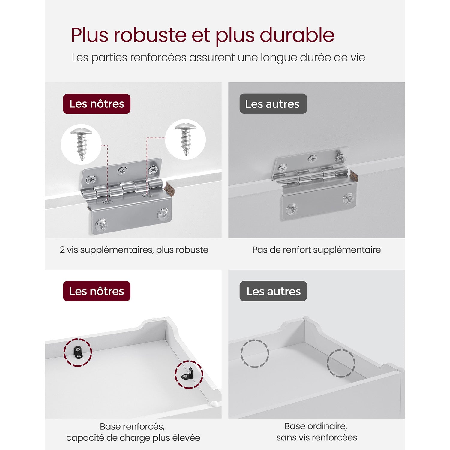 Avec ses dimensions généreuses de 40 x 100 x 46 cm, ce banc de rangement est une solution idéale pour organiser votre intérieur. Il offre un grand espace caché pour stocker couvertures, oreillers, vêtements ou livres, tout en gardant votre entrée ou votre chambre bien ordonnée.