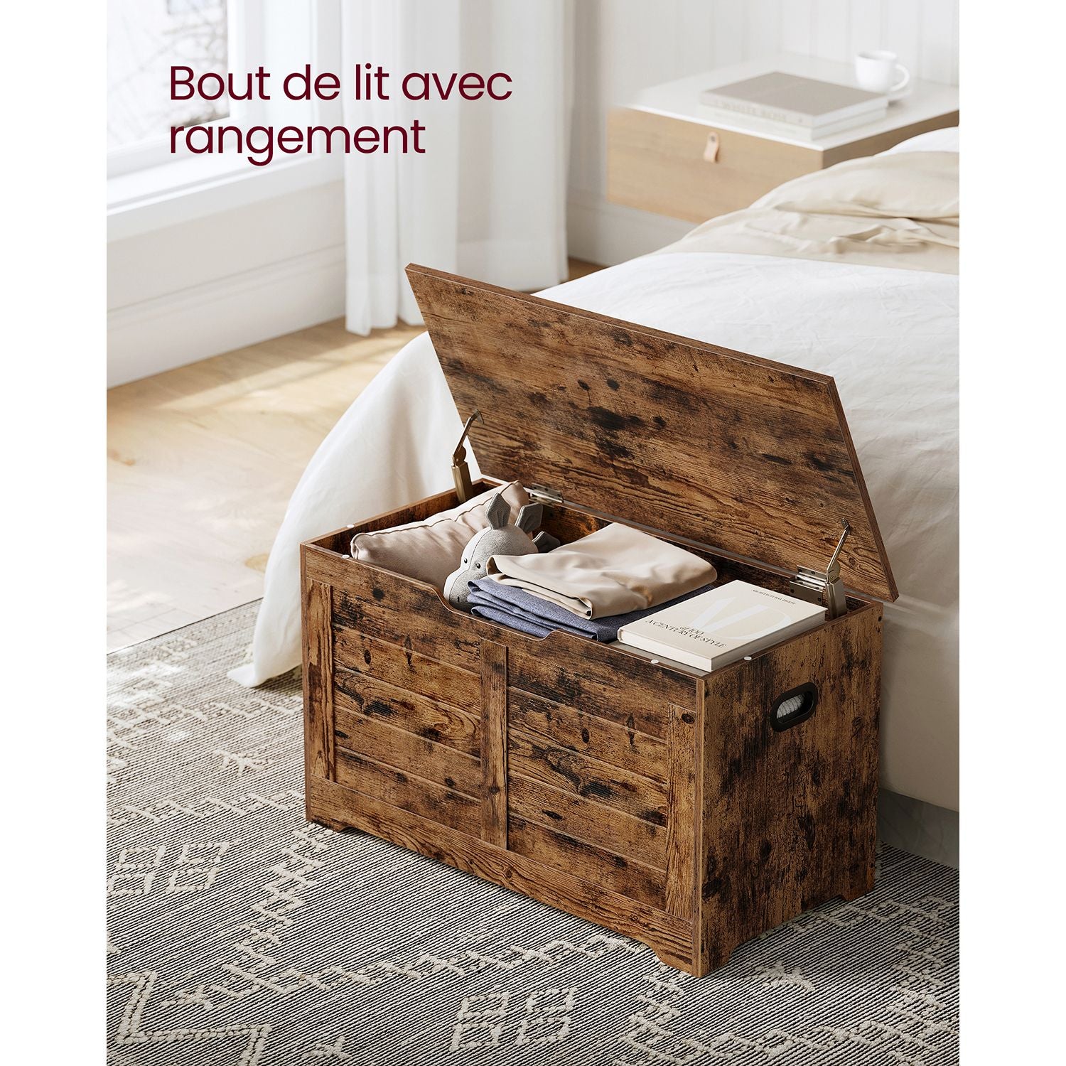 Coffre de rangement intérieur banc à chaussures pouf banquette rangement pour jouet enfant avec charnières de sécurité style moderne 100 x 40 x 46 cm marron 12_0005146