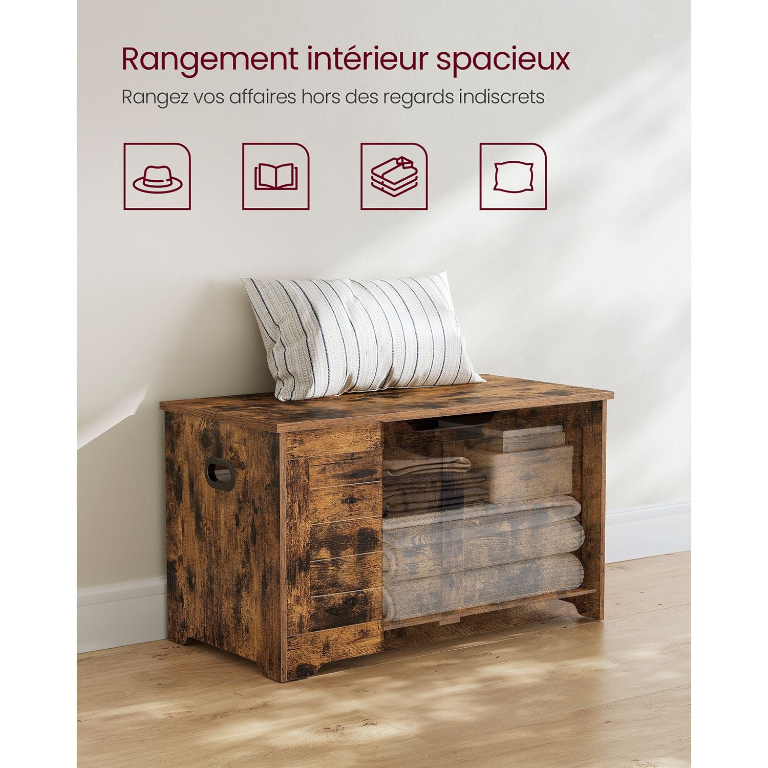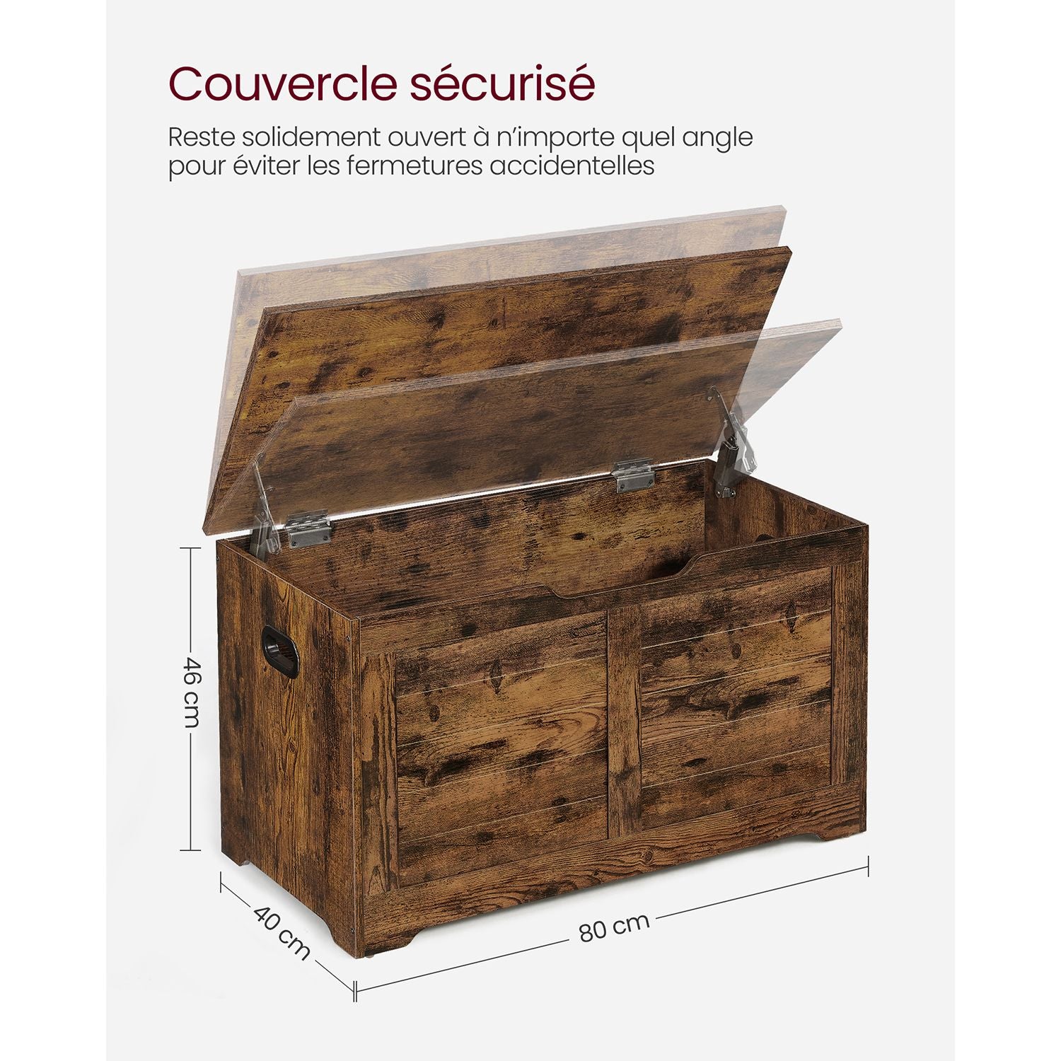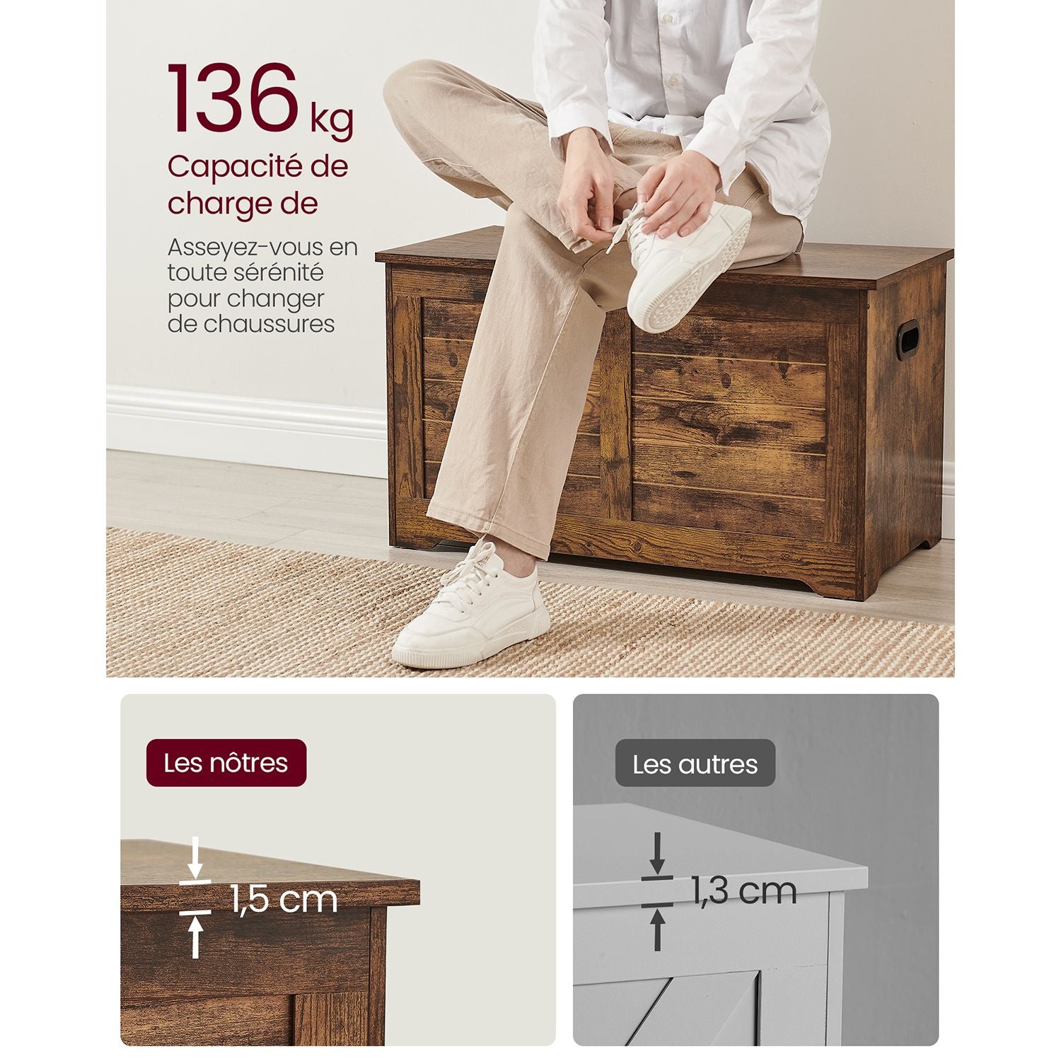 Conçu pour être robuste, il supporte jusqu’à 136 kg, que ce soit à l’intérieur du coffre ou sur l’assise. Vous pouvez donc vous asseoir dessus pour enfiler vos chaussures en toute tranquillité, tout en profitant d’un grand espace de rangement.