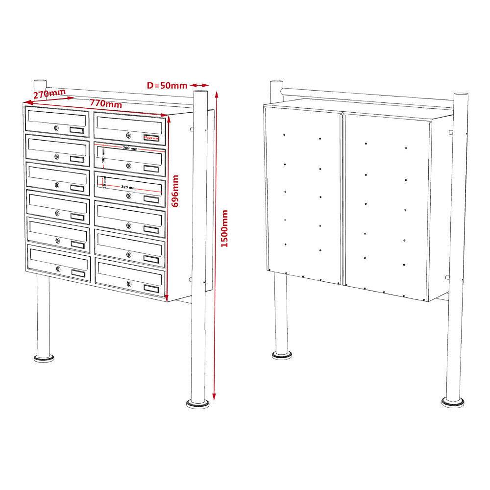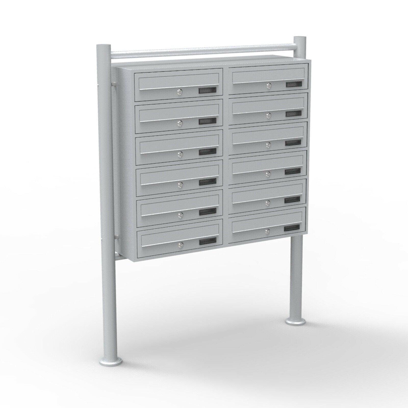 Bloc 12 boites aux lettres sur pieds entrées courrier argenté 16_0000144