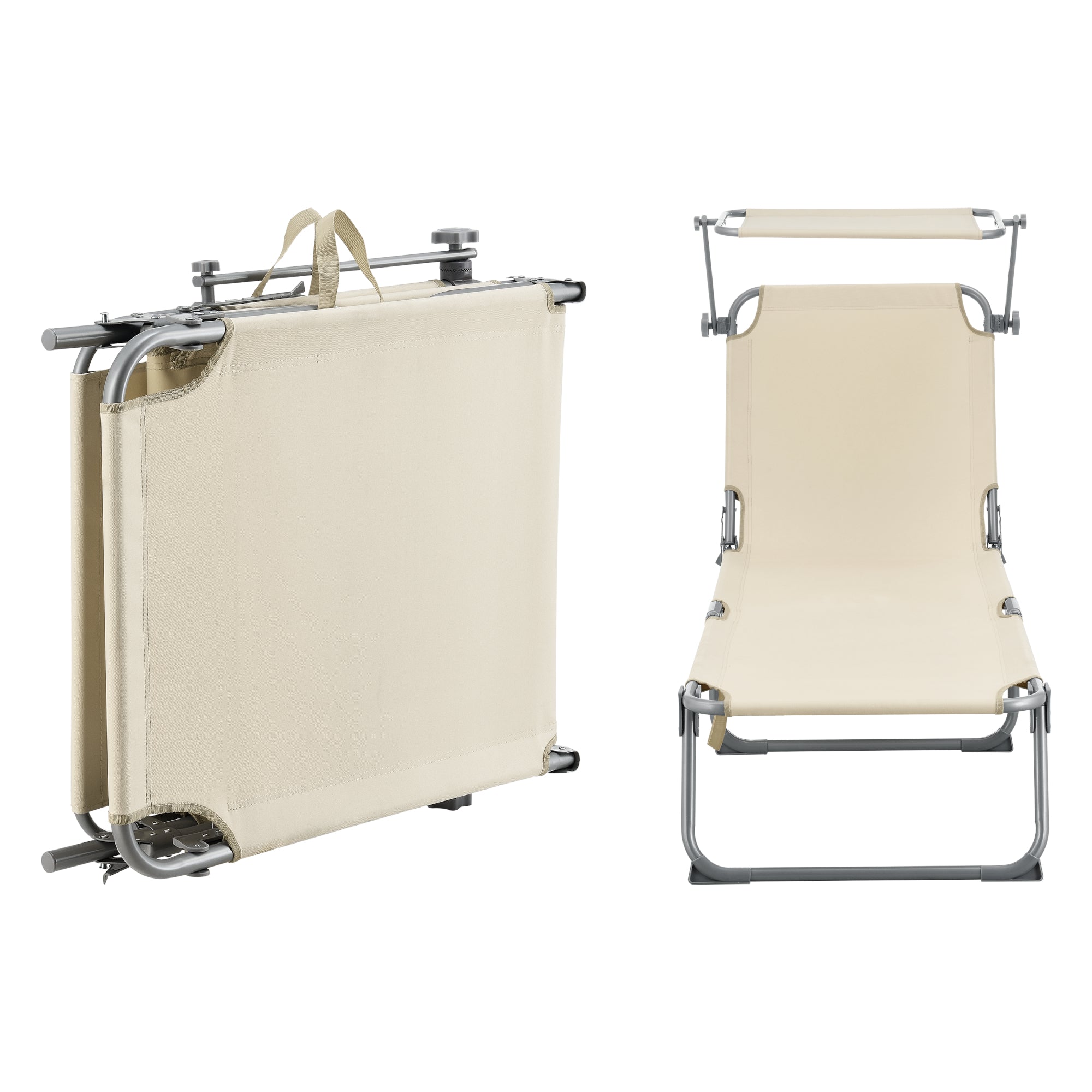 Transat bain de soleil avec pare-soleil acier polyester argenté mat beige 03_0006410