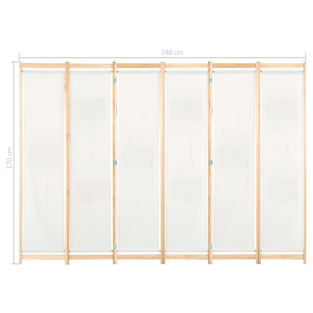 Paravent séparateur de pièce cloison de séparation décoration meuble 6 panneaux crème 240 x 170 x 4 cm tissu 0802082