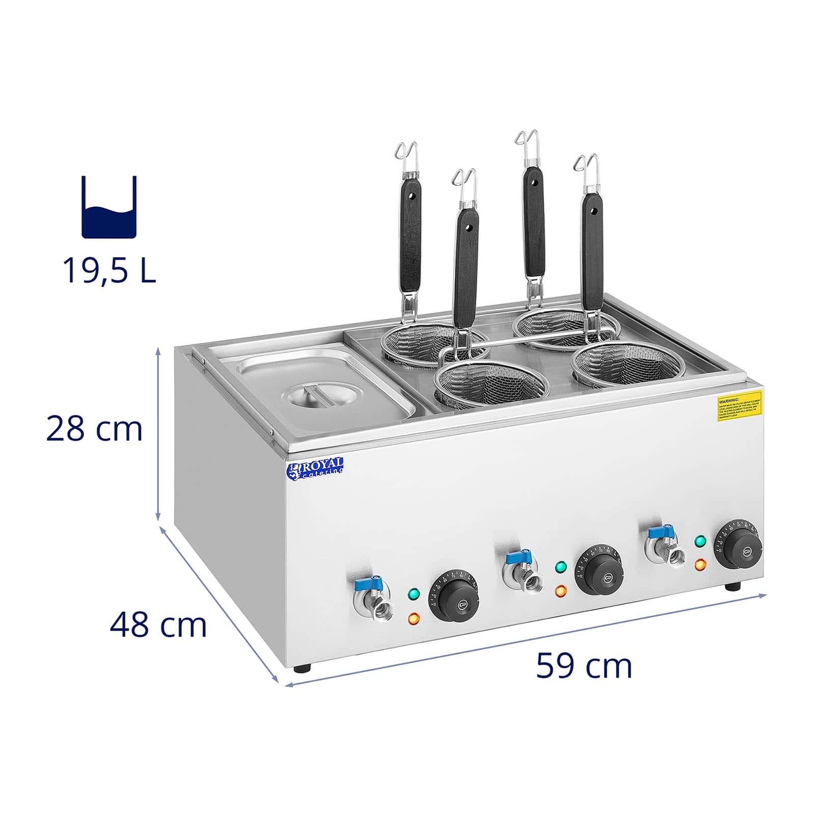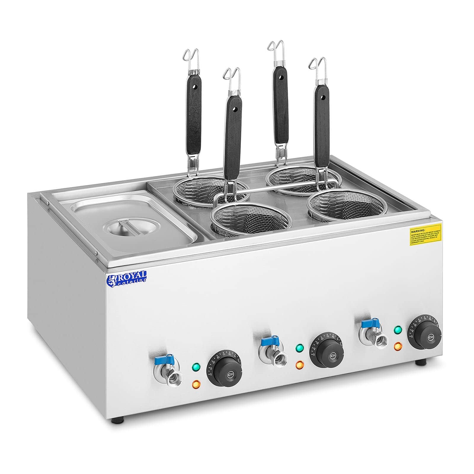 Cuiseur à pâtes cuiseur de pâtes cuiseur 4 paniers et bac GN 1/3 puissance 3 000 watts plage de température : 30 - 110 °C acier inoxydable 14_0003943