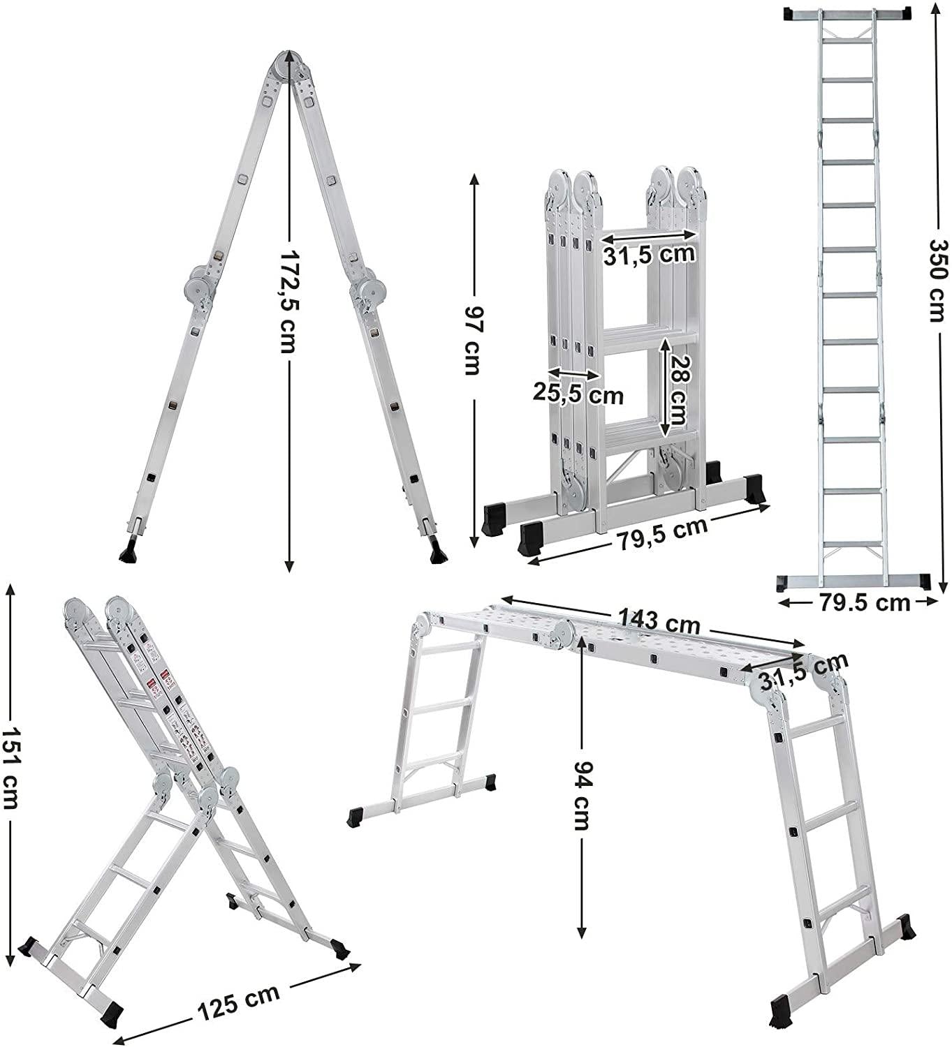 Échelle en alu pliable et multifonctionnelle avec 2 montants résistante à 150kg 12_0000473