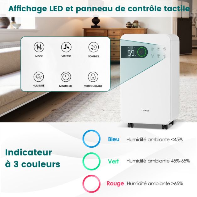 Conçu avec un voyant lumineux à 3 couleurs pour indiquer l'humidité ambiante