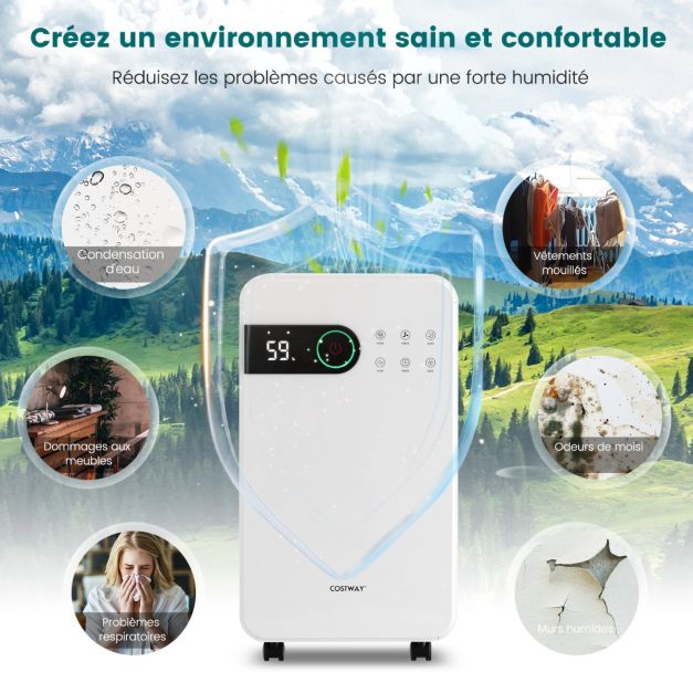 Déshumidificateur portable 15 litres par jour avec réservoir d'eau 2,3 litres pour pièces jusqu'à 10-15㎡ 2 vitesses de ventilation minuterie 24h 3 modes 2 façons de drainage 20_0008429