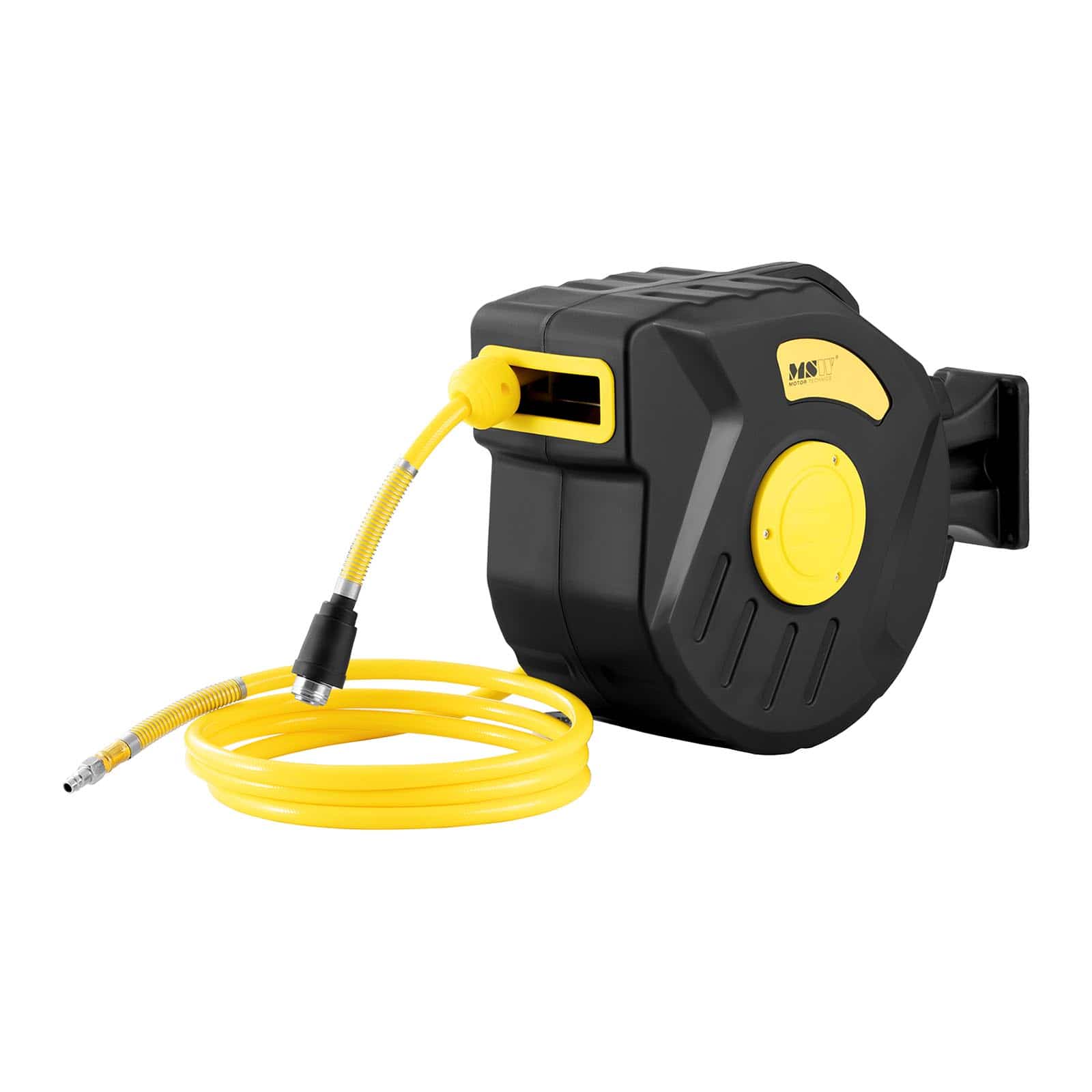 Cet enrouleur automatique de tuyau à air comprimé vous permet d'allonger de 20 + 3 m supplémentaires la portée d'une source d'air comprimé, par exemple un compresseur.