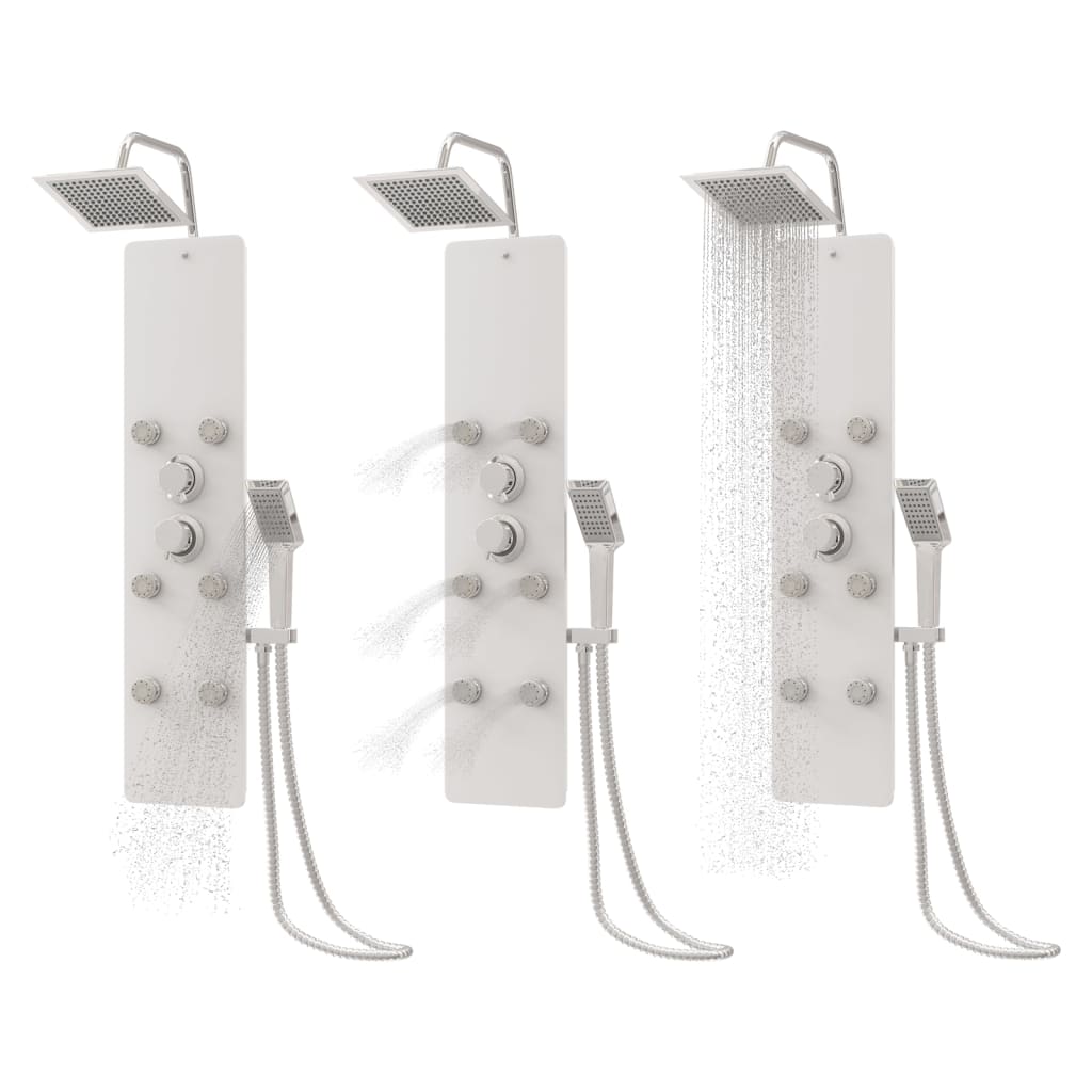 Panneau de douche pomme de douche robinet verre acier inoxydable 130 cm blanc 02_0003436