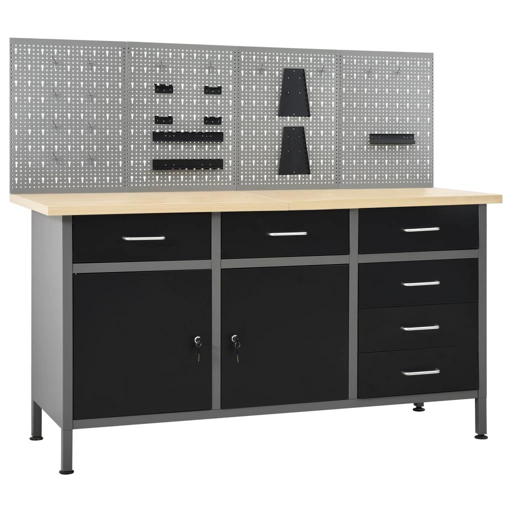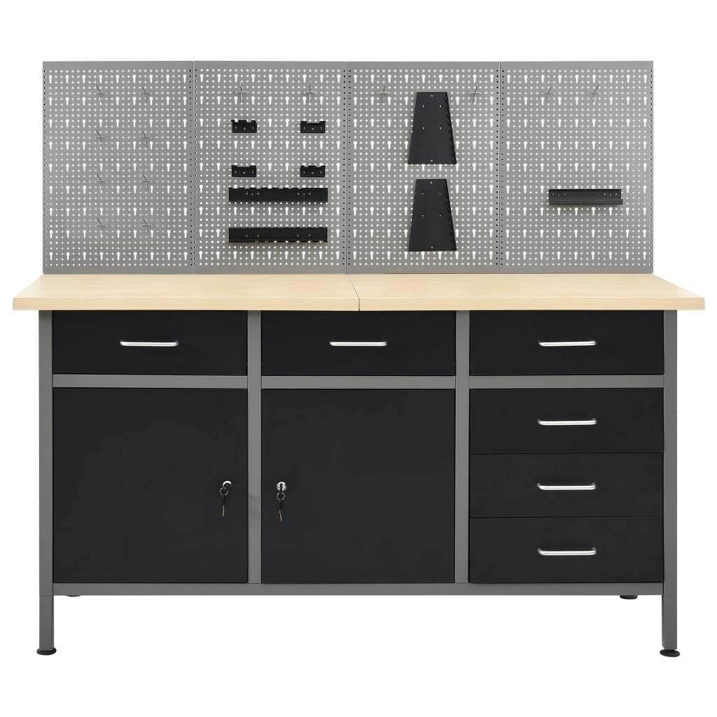 Etabli avec 4 panneaux muraux table de travail poste de travail stockage rangement d'outils 160 cm garage atelier pieds réglables en hauteur 02_0003666