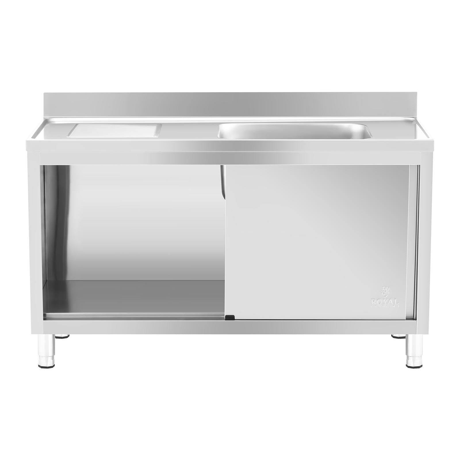 Plonge en inox professionnelle sur meuble bas armoire placard avec évier acier inoxydable (1 bac : 500 x 400 x 240 mm, hauteur du dosseret : 100 mm, pieds réglables) 14_0005019