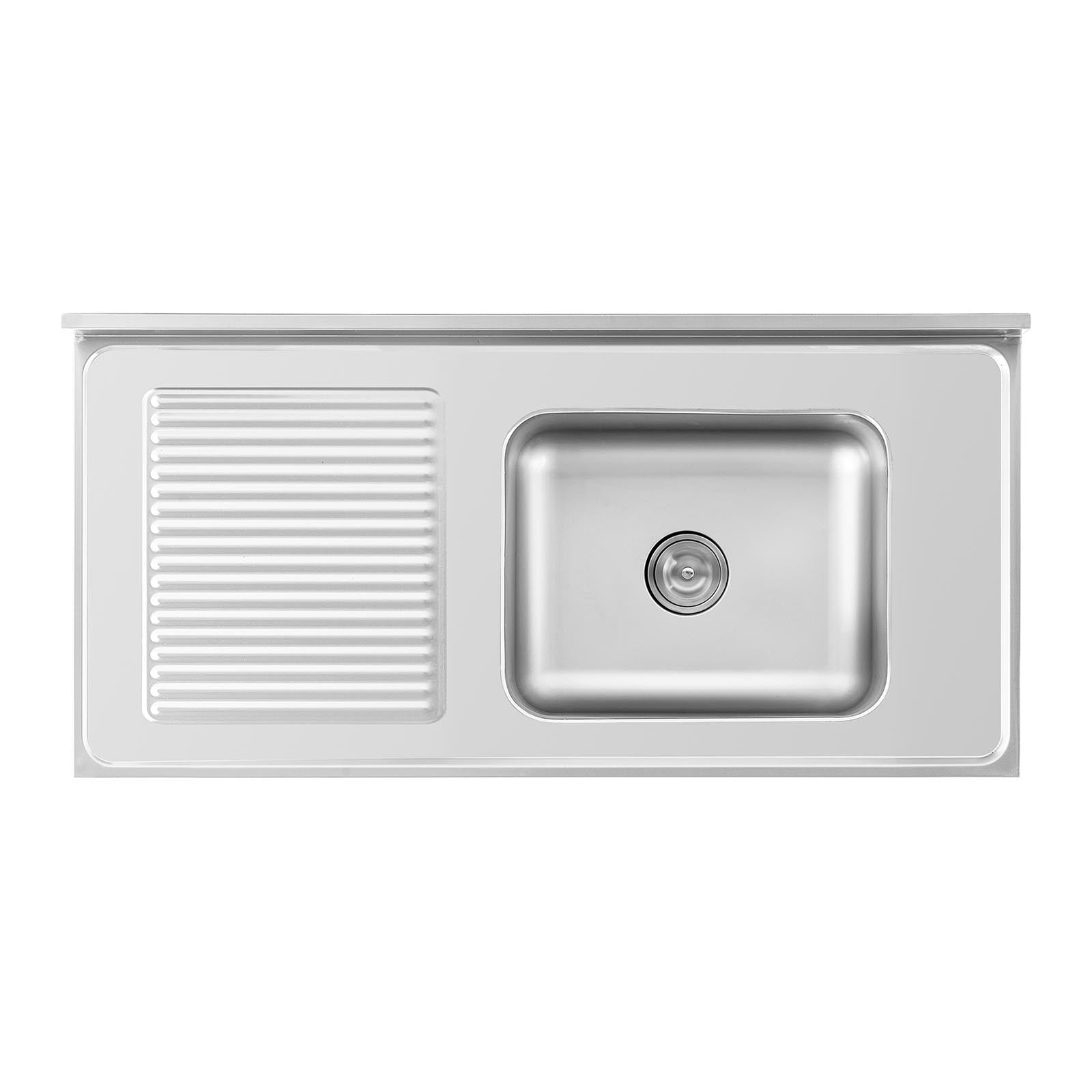 Plonge en inox professionnelle sur meuble bas armoire placard avec évier acier inoxydable (1 bac : 500 x 400 x 260 mm, hauteur du dosseret : 100 mm, pieds réglables) 14_0005020