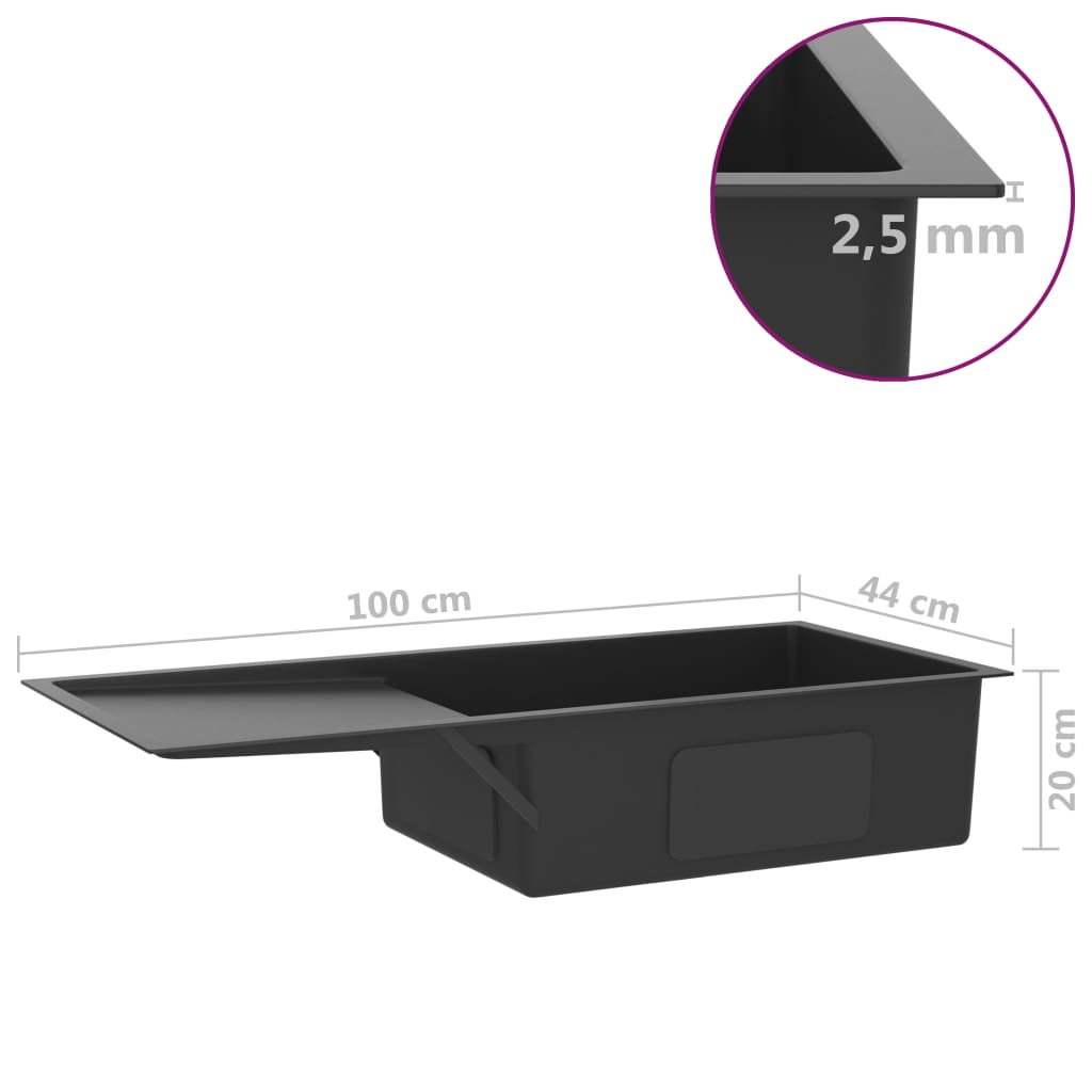 Évier de cuisine fait main 100 x 44 cm acier inoxydable noir 02_0002476