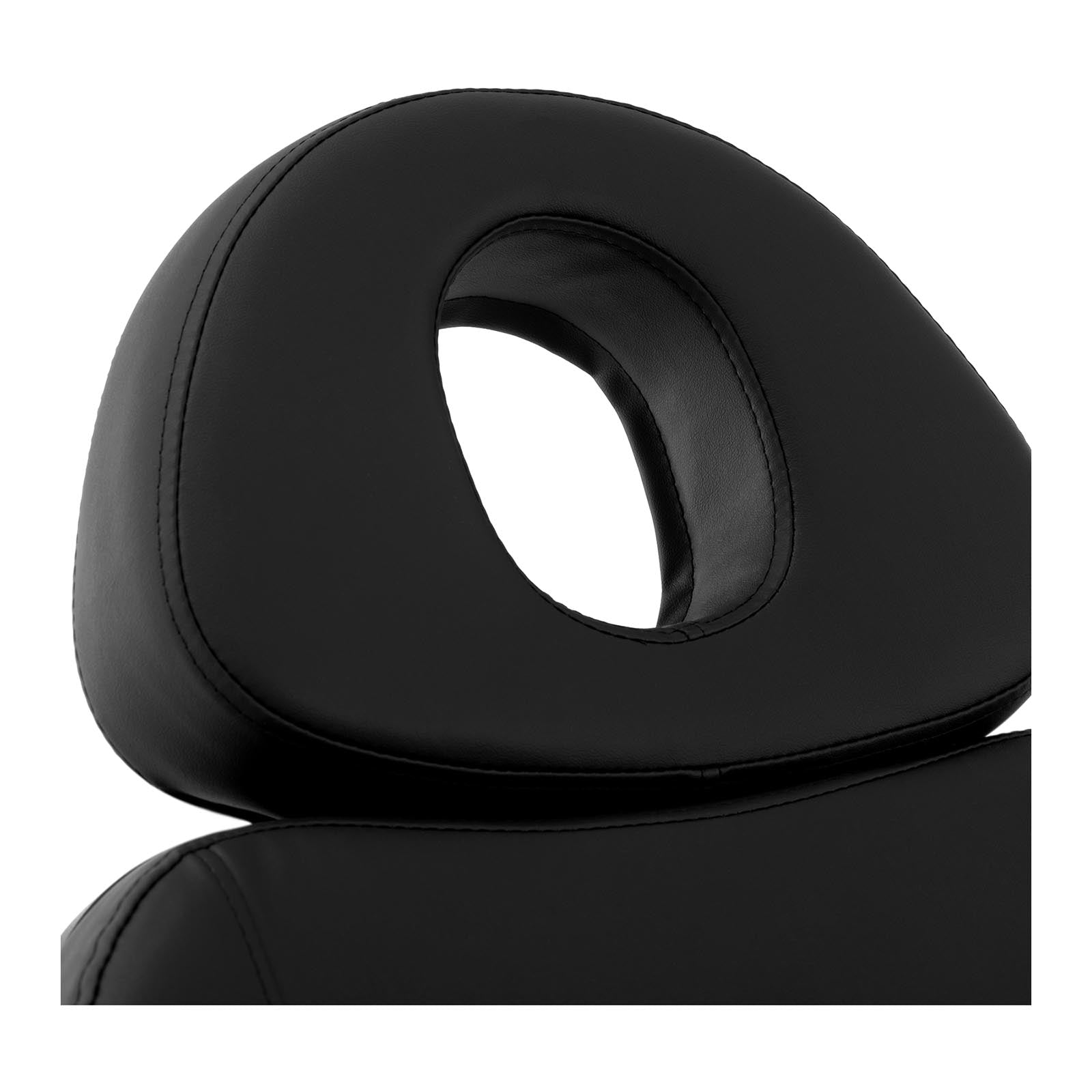 Votre clientèle doit pouvoir respirer librement sur le ventre si le fauteuil esthétique est utilisé comme table de massage, c'est pourquoi l'appui-tête comporte une cavité pour le visage.