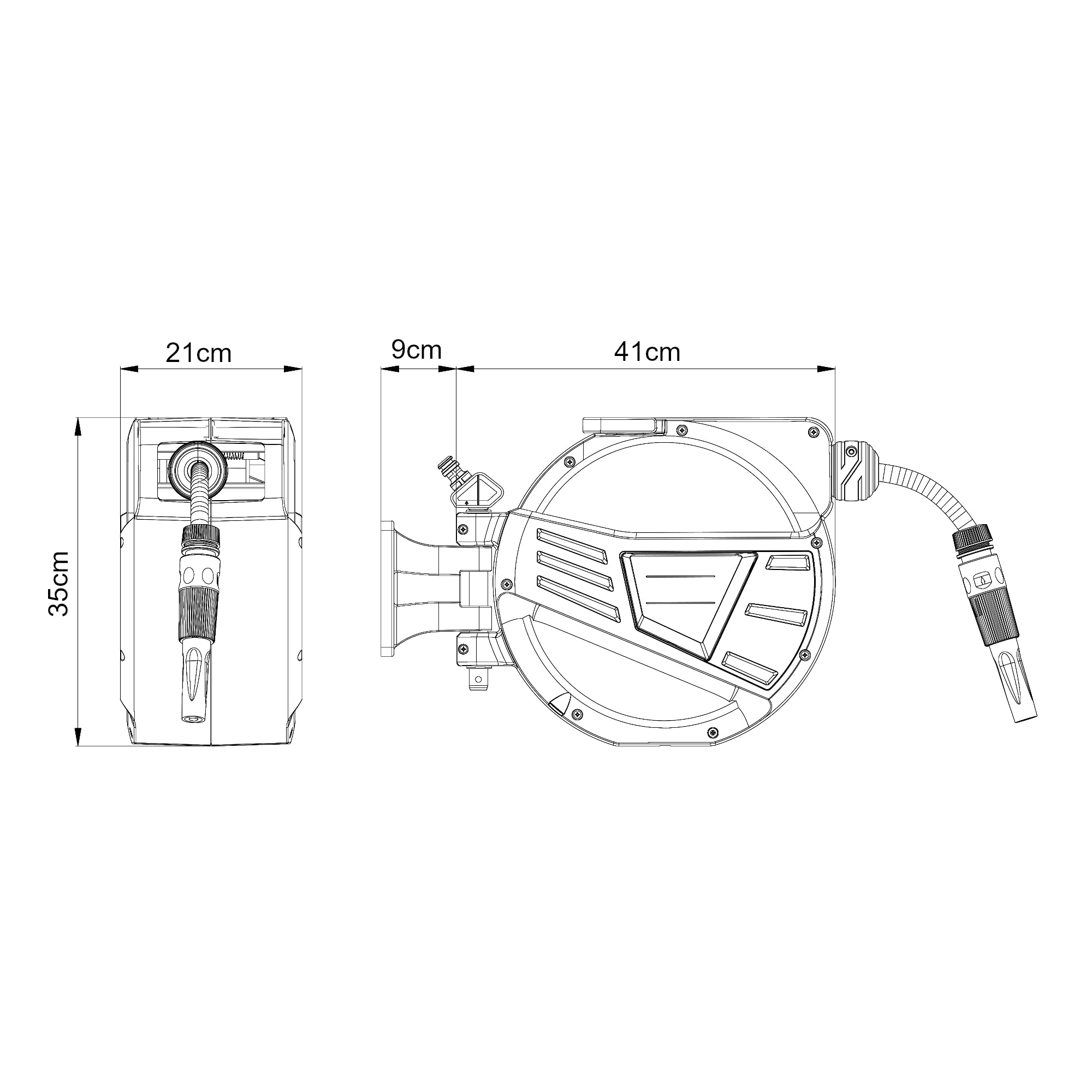 - 1 x enrouleur de tuyau avec tuyau d'alimentation