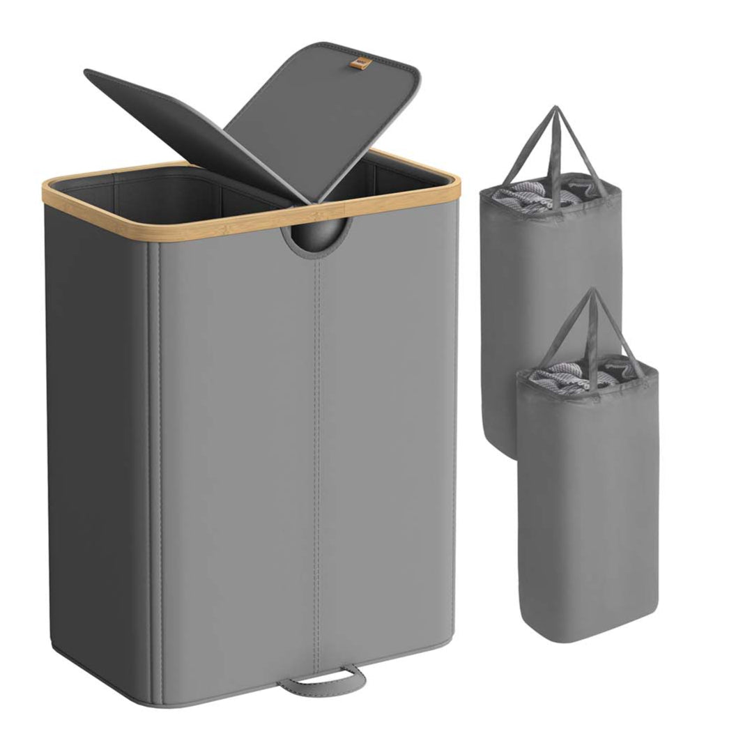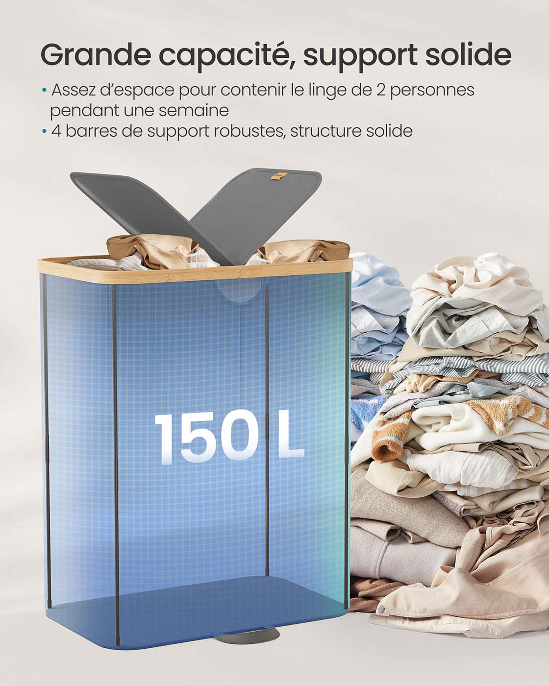 Panier à linge à 2 compartiments 150 litres trieur de linge sale avec couvercle sacs amovibles pour buanderie chambre salon gris 12_0006663