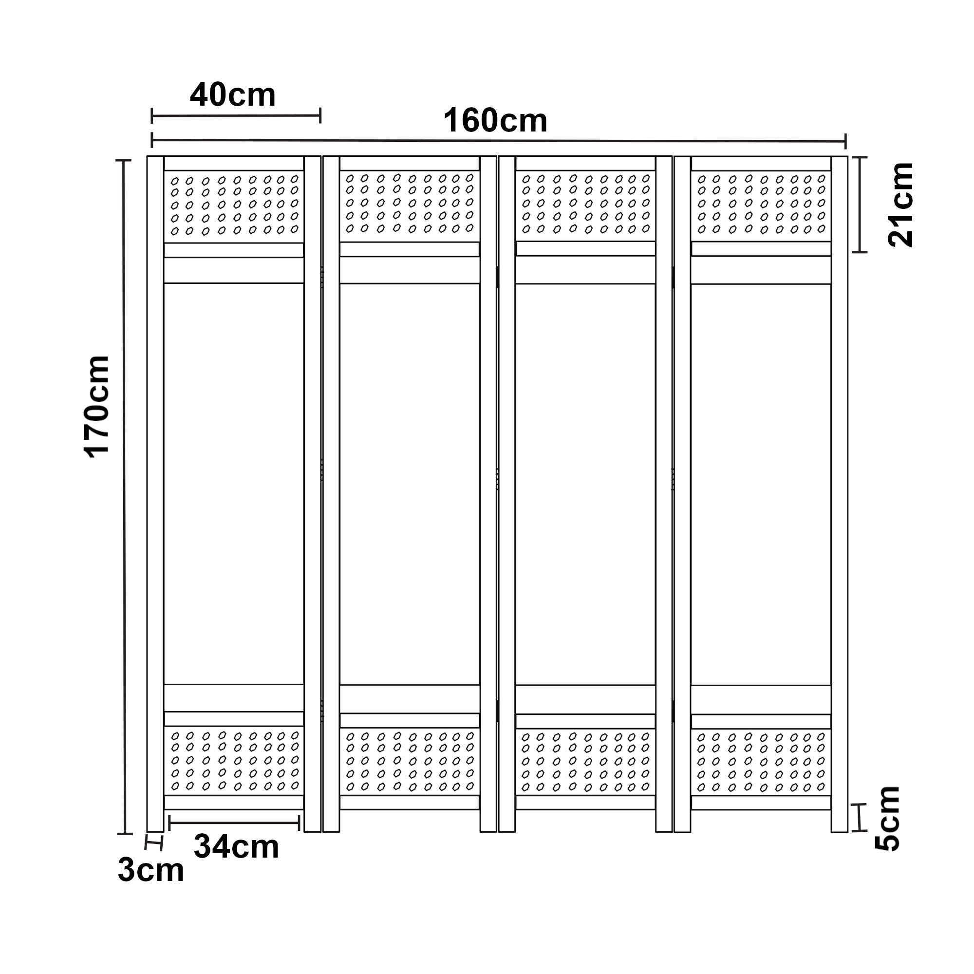 Le paravent est composé de 4 panneaux reliés par des charnières solides. Il est livré déjà monté et prêt à être utilisé immédiatement.