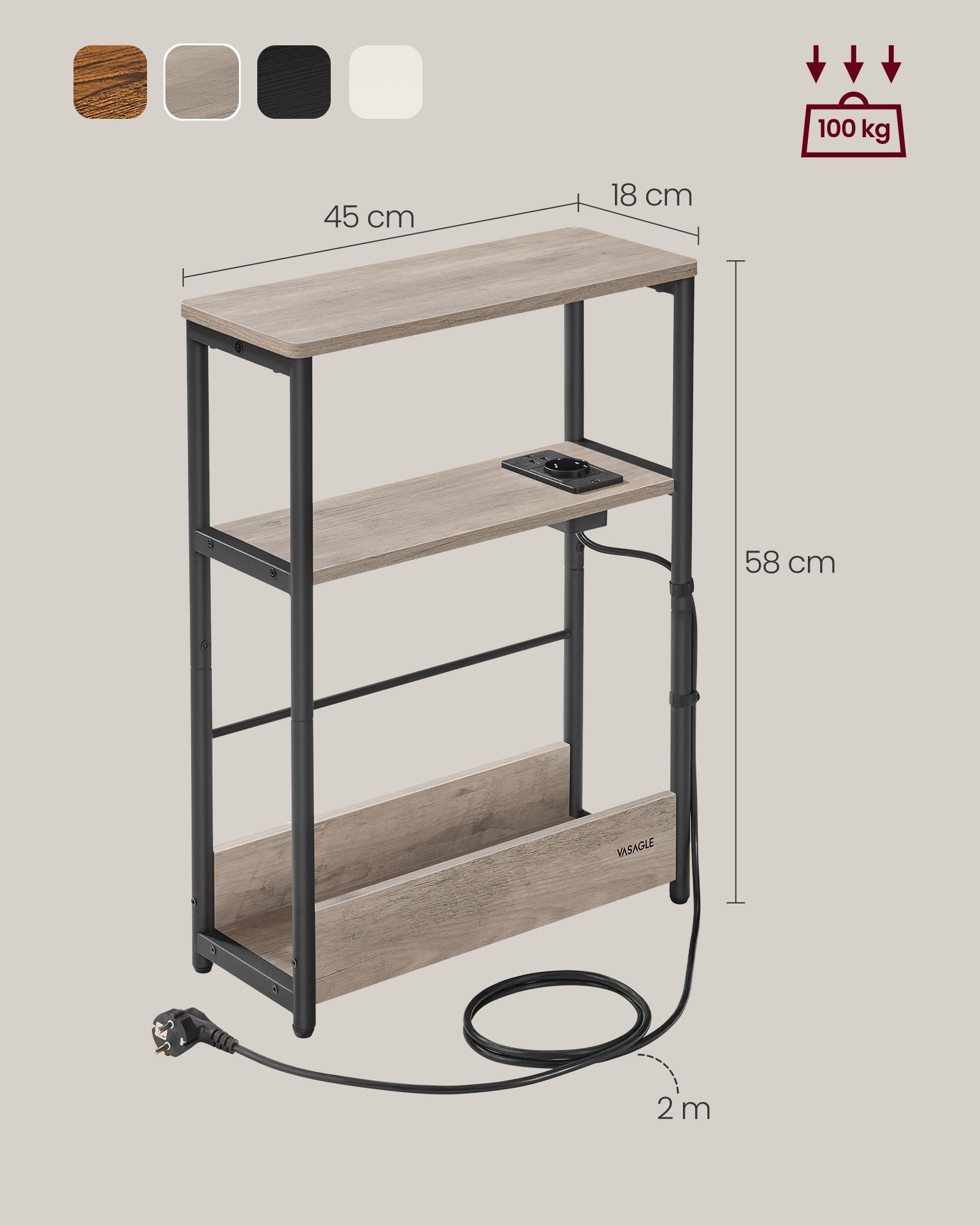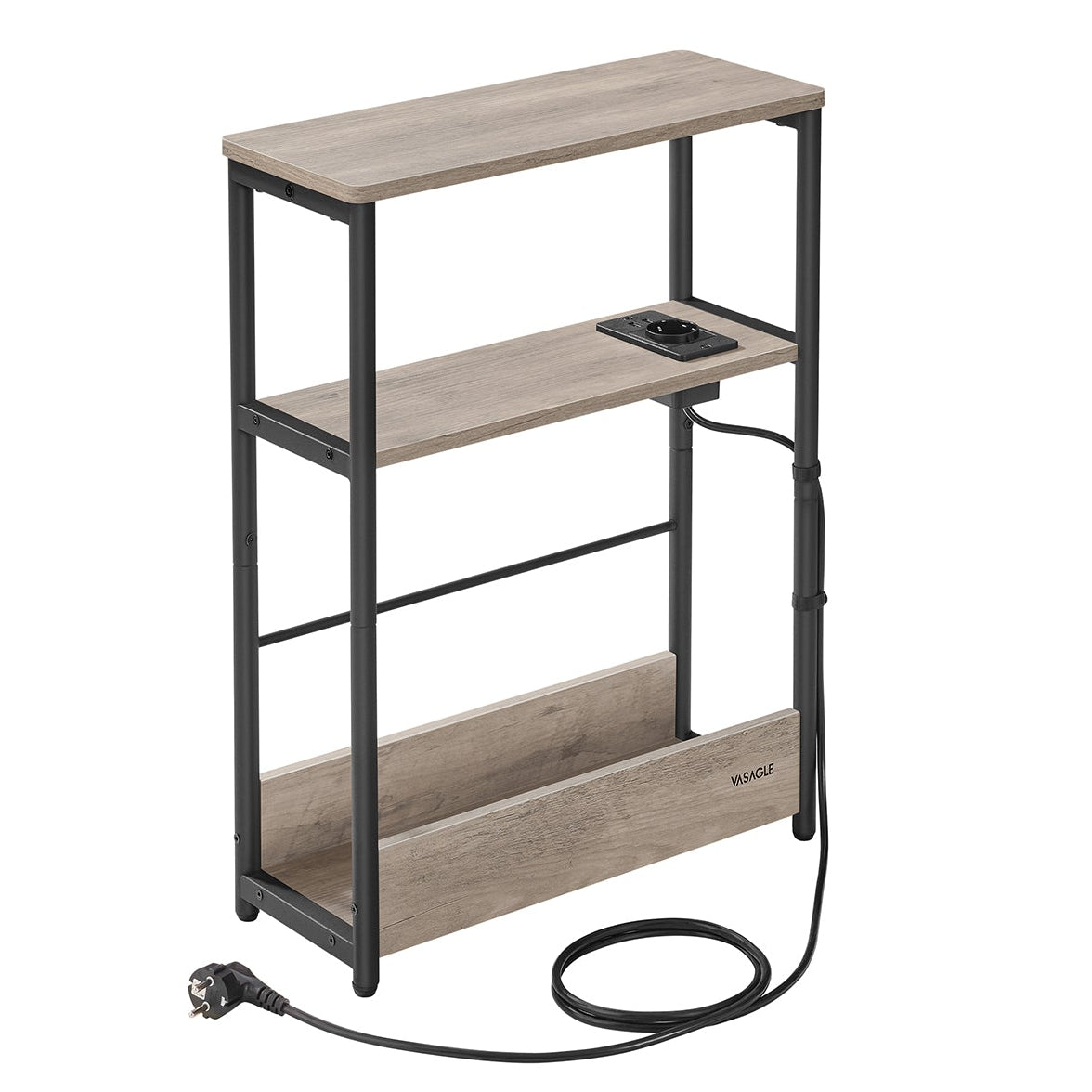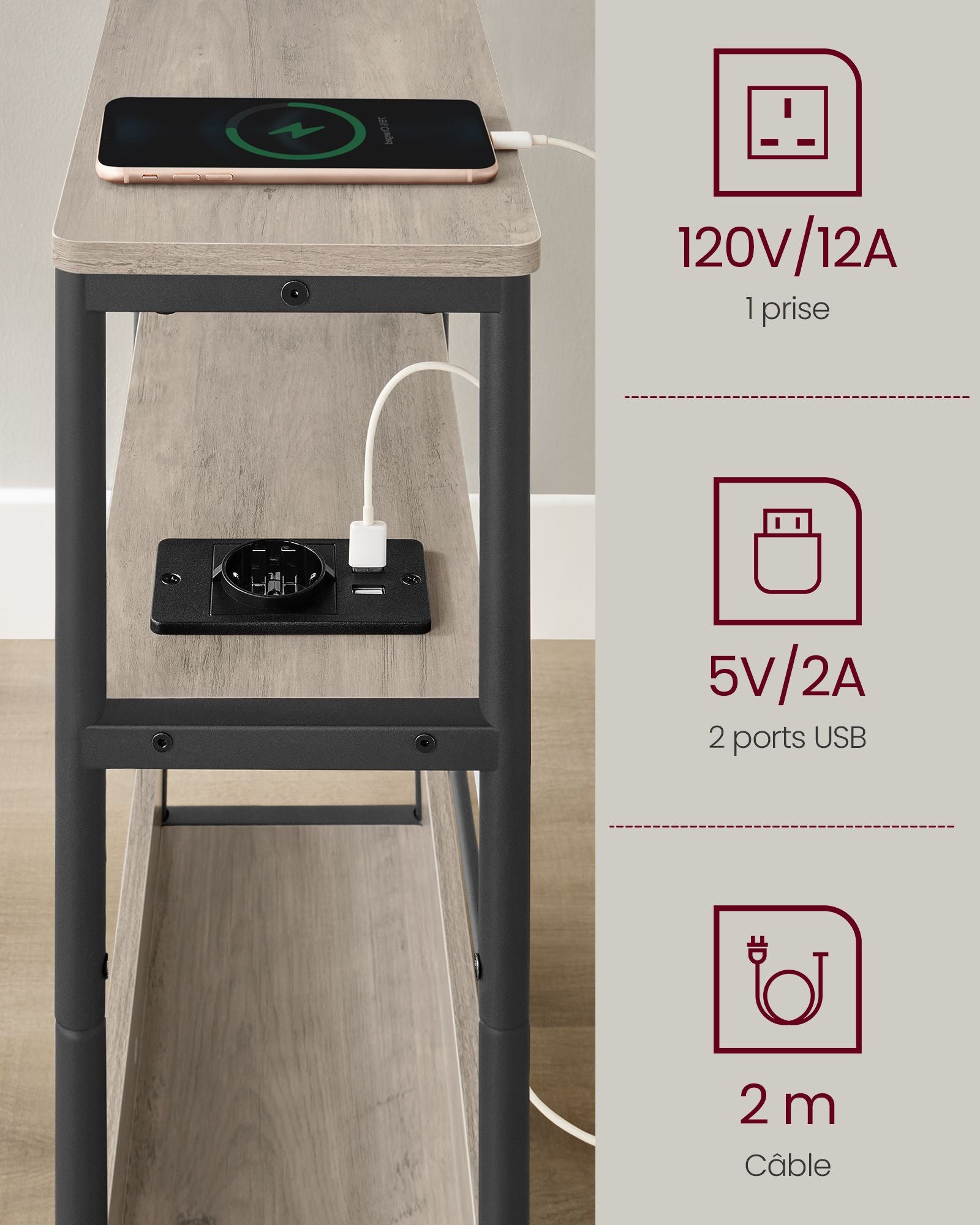Table d’appoint fine avec multiprise table de chevet à 3 niveaux bout de canapé pour petits espaces porte-magazines salon chambre bureau tables d'appoint gris 12_0007558