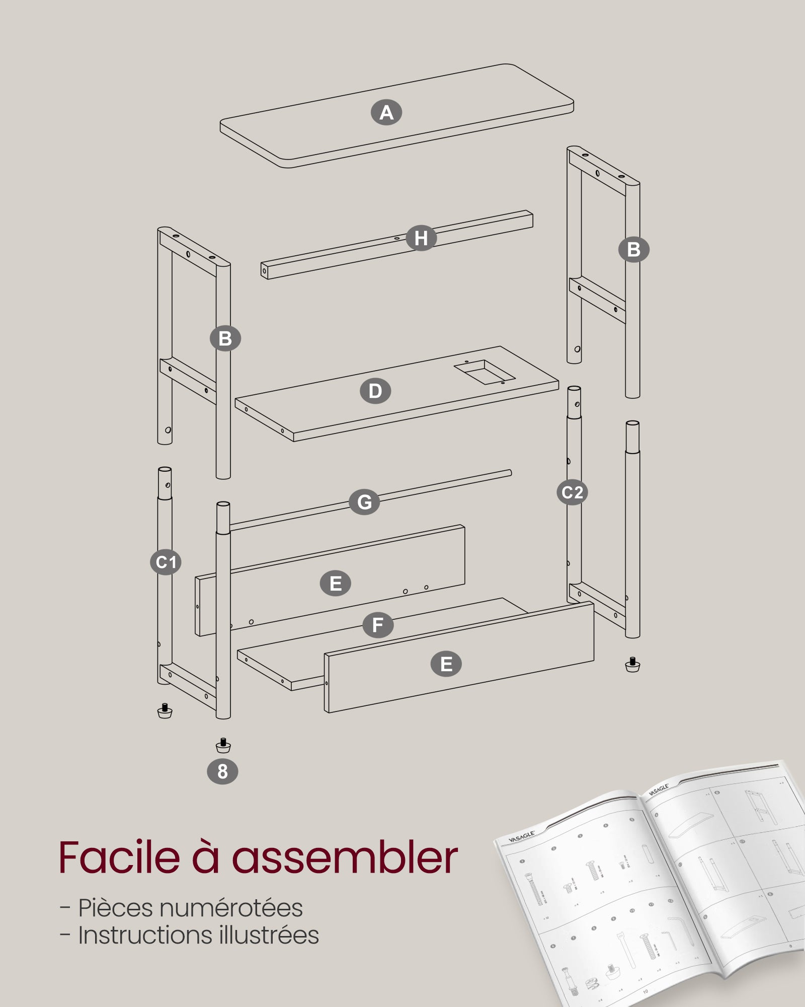 L’assemblage est simple et rapide : les pièces sont numérotées et les instructions illustrées vous guident pas à pas pour un montage sans difficulté.