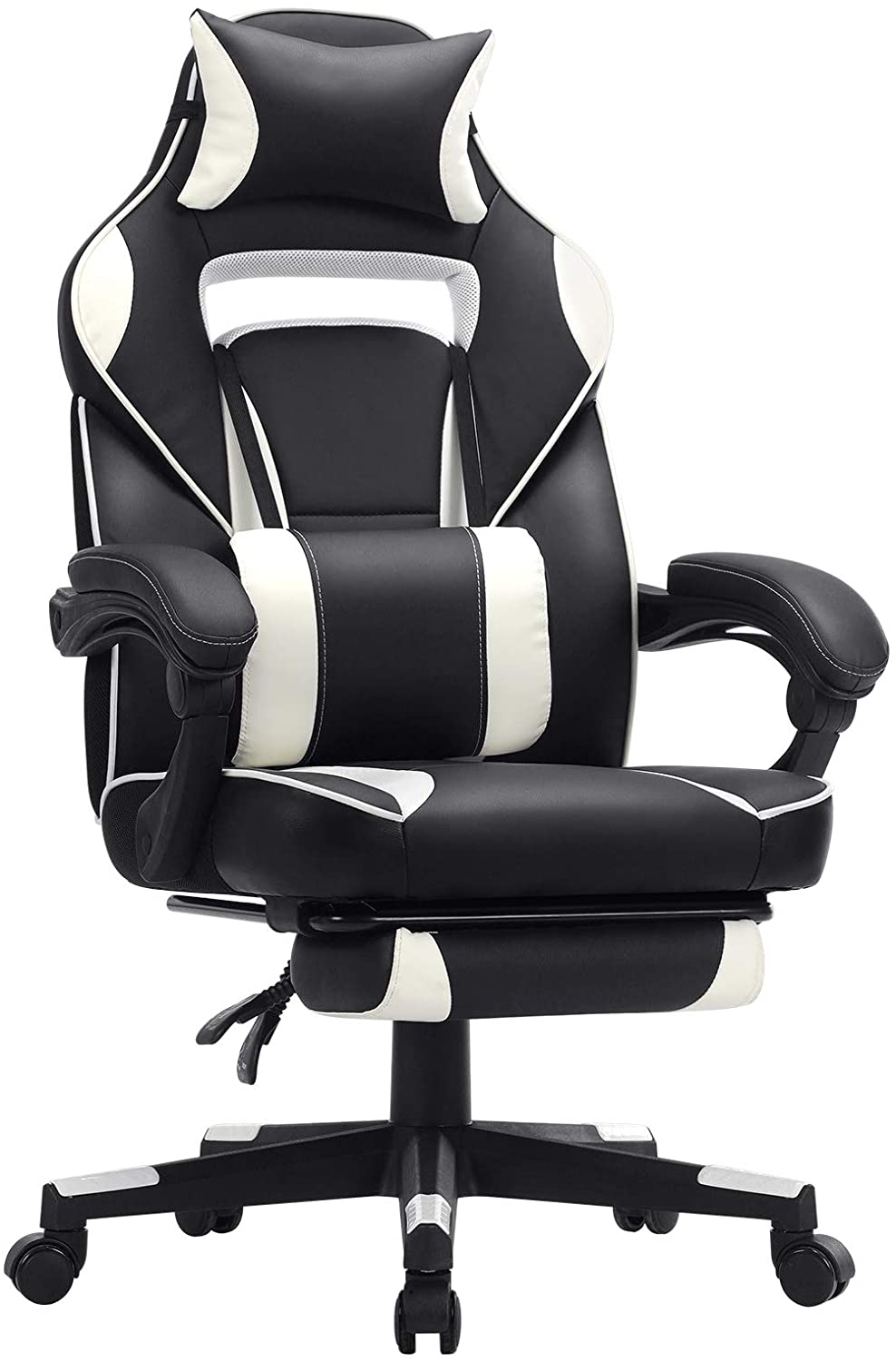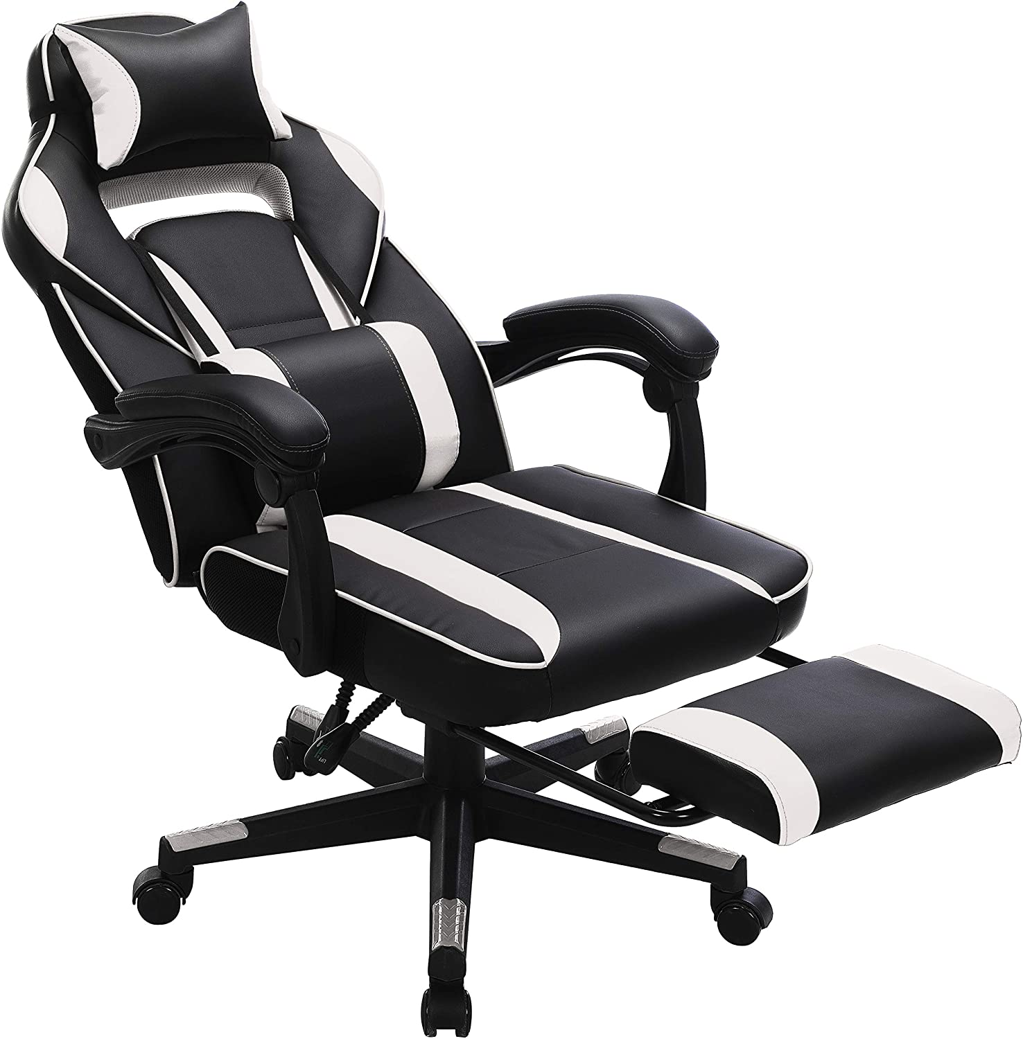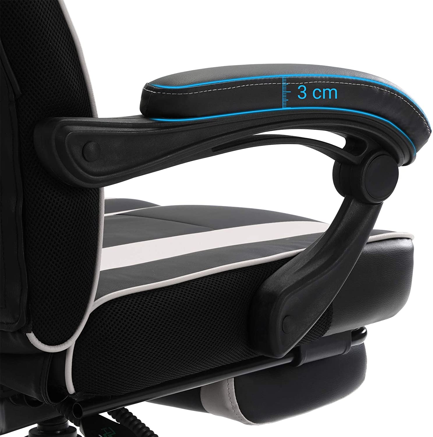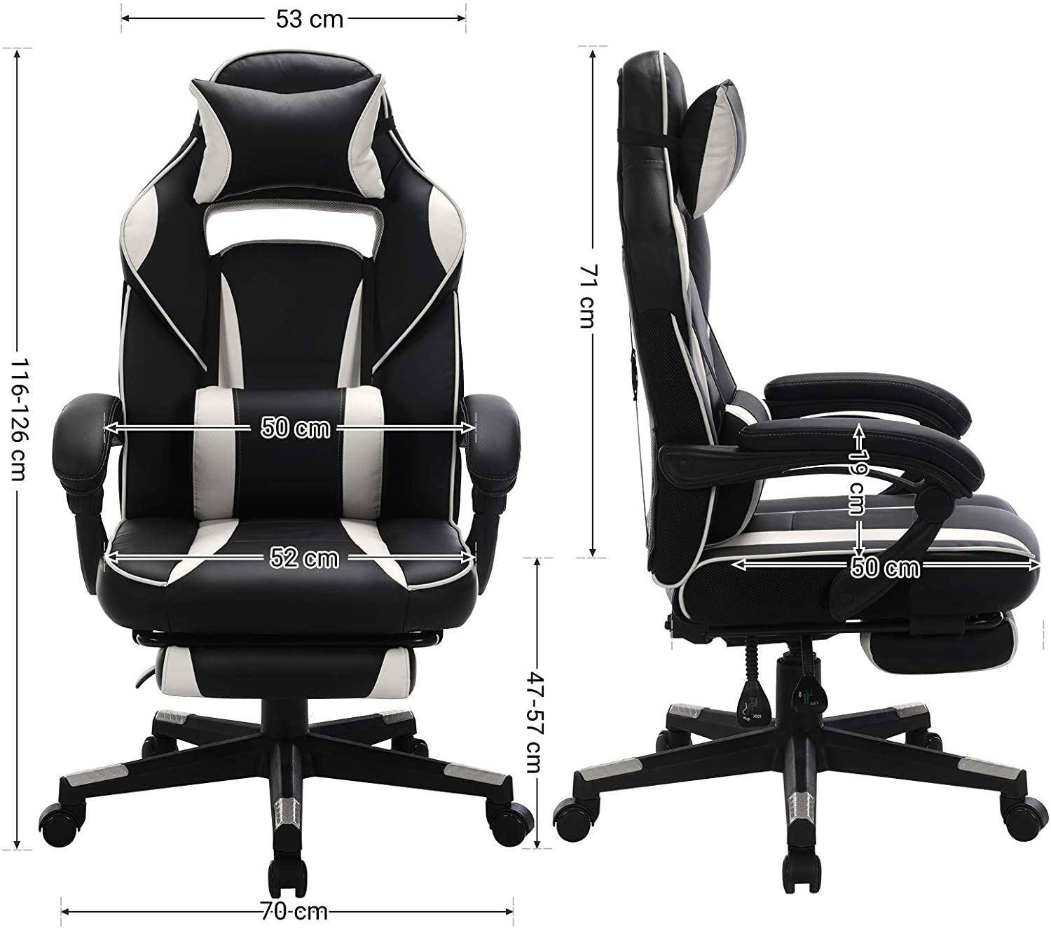 Fauteuil gamer chaise gaming siège de bureau réglable avec repose-pieds télescopique ergonomique mécanisme basculent appui-tête support lombaire charge 150 kg noir et blanc 12_0000398